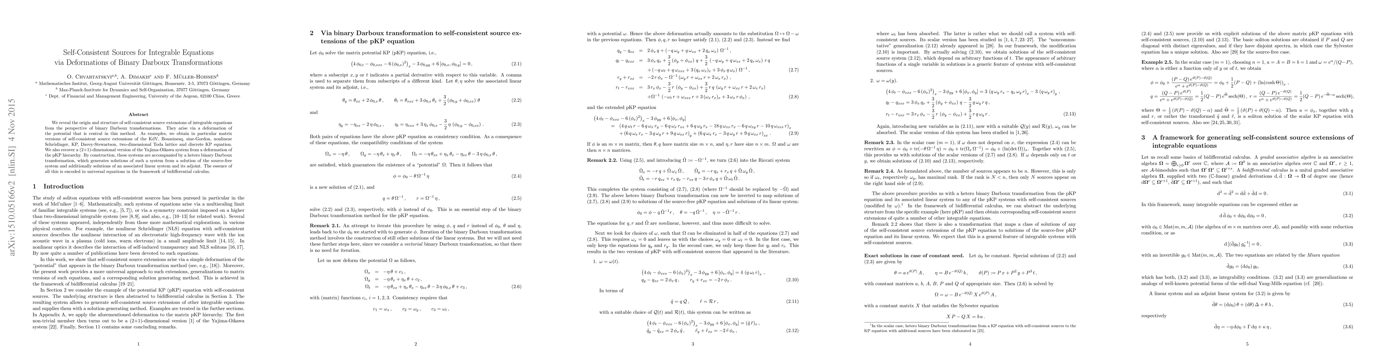We reveal the origin and structure of self-consistent source extensions of integrable equations from the perspective of binary Darboux transformations. They arise via a deformation of the potential that is central in this method. As examples, we obtain in particular matrix versions of self-consistent source extensions of the sine-Gordon, nonlinear Schrodinger, KdV, Boussinesq, KP, Davey-Stewartson, two-dimensional Toda lattice and discrete KP systems. We also recover a (2+1)-dimensional version of the Yajima-Oikawa system from a deformation of the pKP hierarchy. By construction, these systems are accompanied by a hetero binary Darboux transformation, which generates solutions of such a system from a solution of the source-free system and additionally solutions of an associated linear system and its adjoint. The essence of all this is encoded in universal equations in the framework of bidifferential calculus.