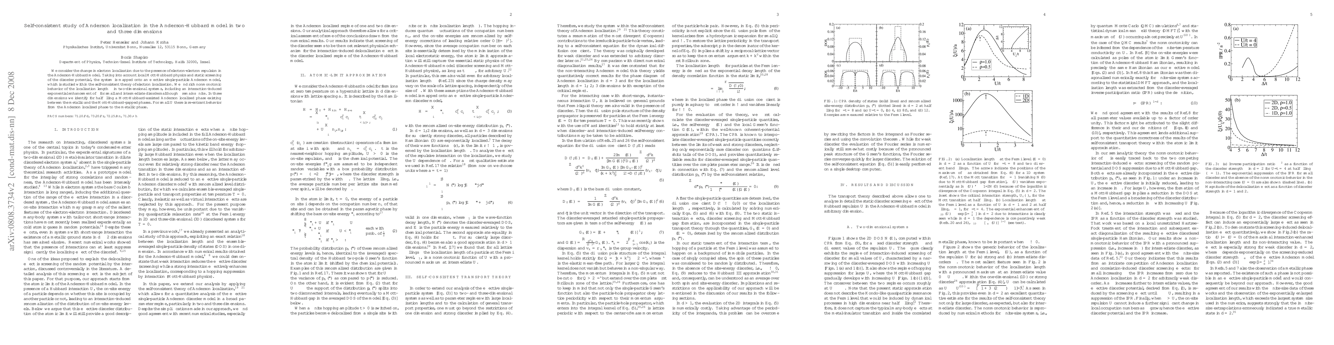 This study investigates electron localization in the Anderson-Hubbard model, revealing complex nonmonotonic behavior in 2D with enhanced localization due to electron-electron repulsion. In 3D, it identifies a Mott-Hubbard-assisted localized phase between metallic and Mott phases, with re-entrant transitions for small interaction strength.