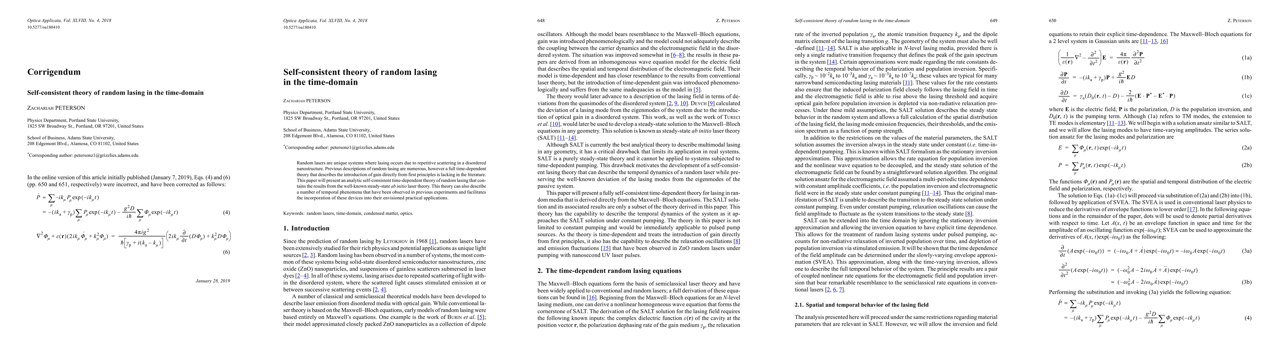 This paper presents a self-consistent time-dependent theory for random lasing, addressing the lack of a full time-dependent model that derives gain from first principles. The proposed theory encompasses steady-state results and explains observed temporal phenomena, aiding practical applications.