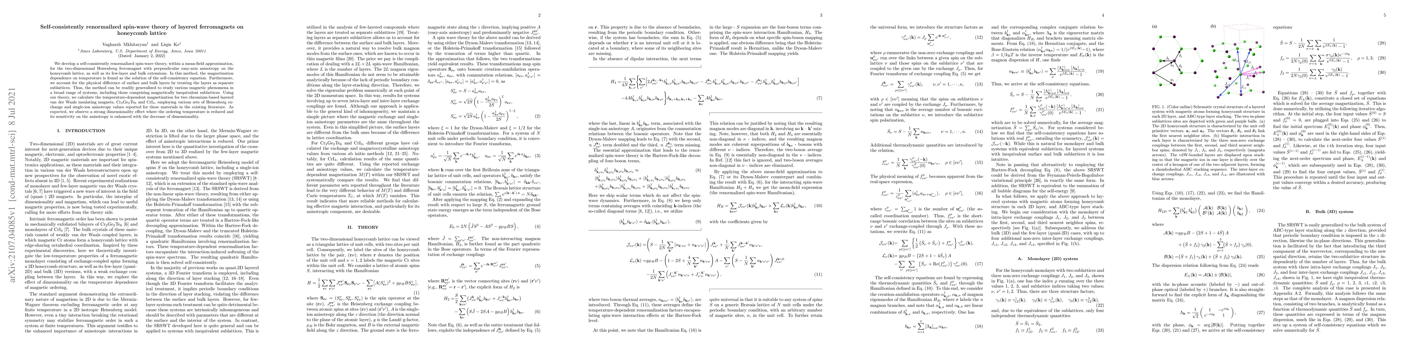 This paper develops a self-consistently renormalized spin-wave theory for layered ferromagnets on a honeycomb lattice, accounting for the differences between surface and bulk layers. The method is applied to calculate the temperature-dependent magnetization of Cr$_2$Ge$_2$Te$_6$ and CrI$_3$, demonstrating a strong dimensionality effect on ordering temperature.