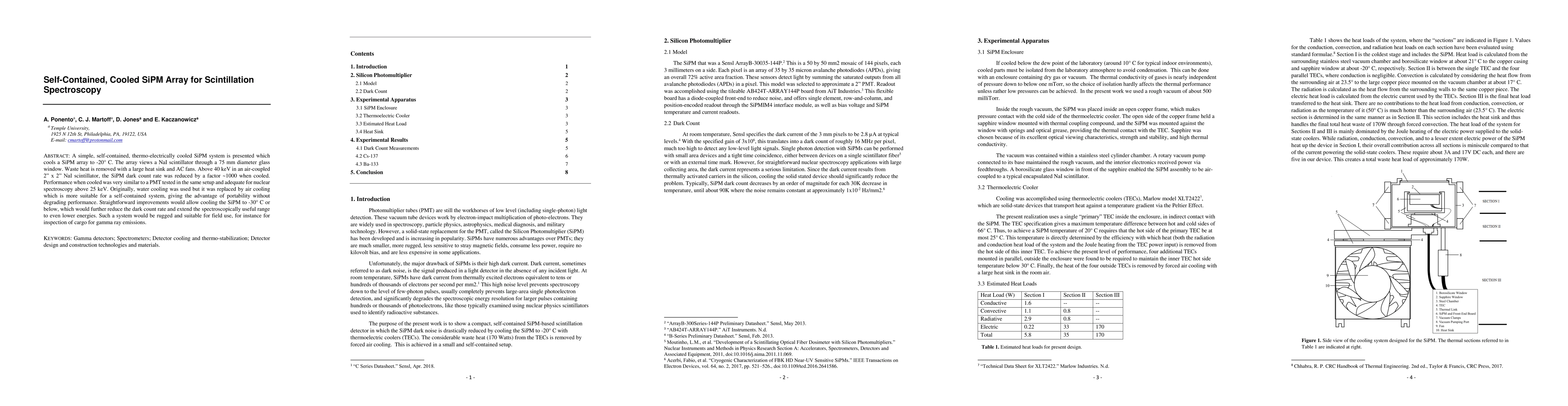 A simple, self-contained, thermo-electrically cooled SiPM system is presented which cools a SiPM array to -20 C. The array views a NaI scintillator through a 75 mm diameter glass window. Waste heat is removed with a large heat sink and AC fans. Above 40 keV in an air-coupled 2" x 2" NaI scintillator, the SiPM dark count rate was reduced by a factor of about 1000 when cooled. Spectroscopic performance when cooled was very similar to a PMT tested in the same setup, and adequate for nuclear spectrsocopy above 25 keV. Originally, water cooling was used but it was replaced by air cooling which is more suitable for a self-contained system, giving the advantage of portability without degrading performance. Straightforward improvements would allow cooling the SiPM to -30 C or below, which would further reduce the dark count rate and extend the spectroscopically useful range to even lower energies. Such a system would be rugged and suitable for field use, for instance for inspection of cargo for gamma ray emissions.