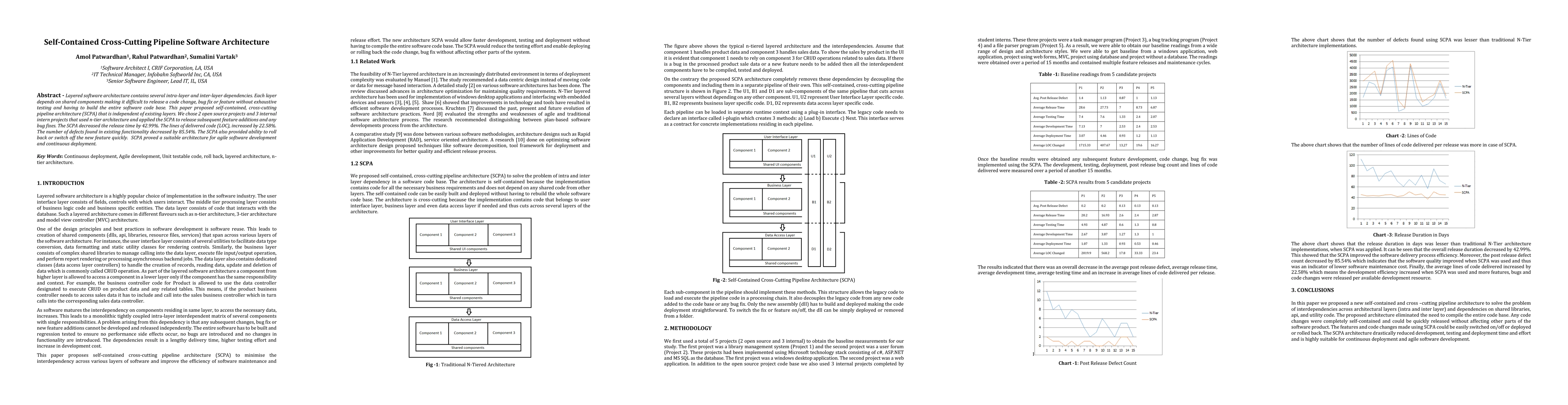 This paper proposes a self-contained, cross-cutting pipeline architecture (SCPA) to reduce dependencies in layered software architecture, leading to a 42.99% decrease in release time and a 85.54% reduction in defects in existing functionality. Applied to five projects, SCPA facilitated faster feature additions and bug fixes with increased code lines and easy rollback capabilities.