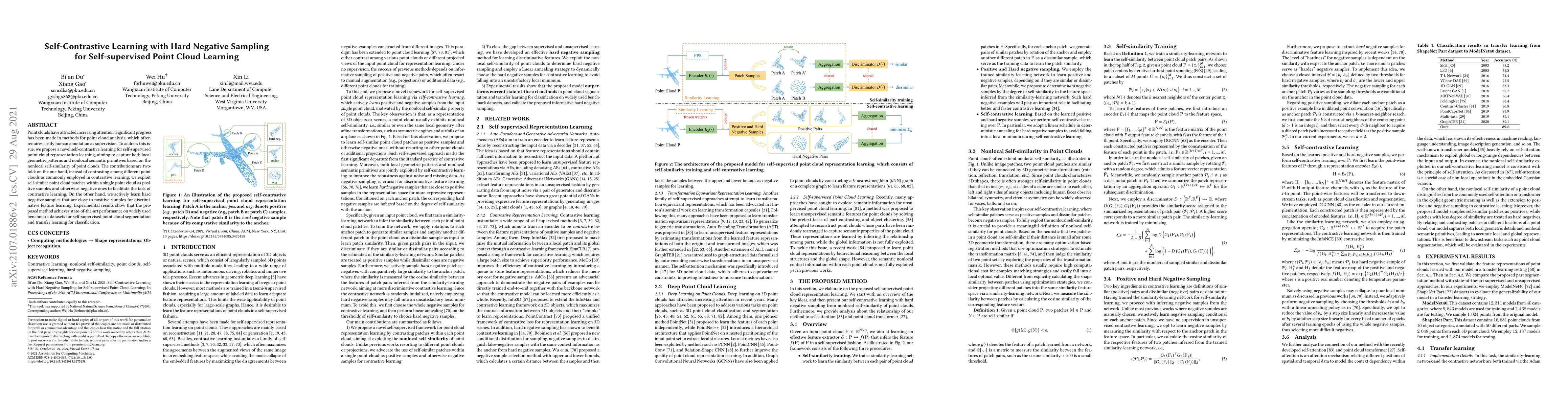 This paper proposes a self-contrastive learning method with hard negative sampling for self-supervised point cloud representation learning, leveraging self-similar patches within a single point cloud to improve feature learning. The method achieves state-of-the-art performance on benchmark datasets for point cloud segmentation and classification.