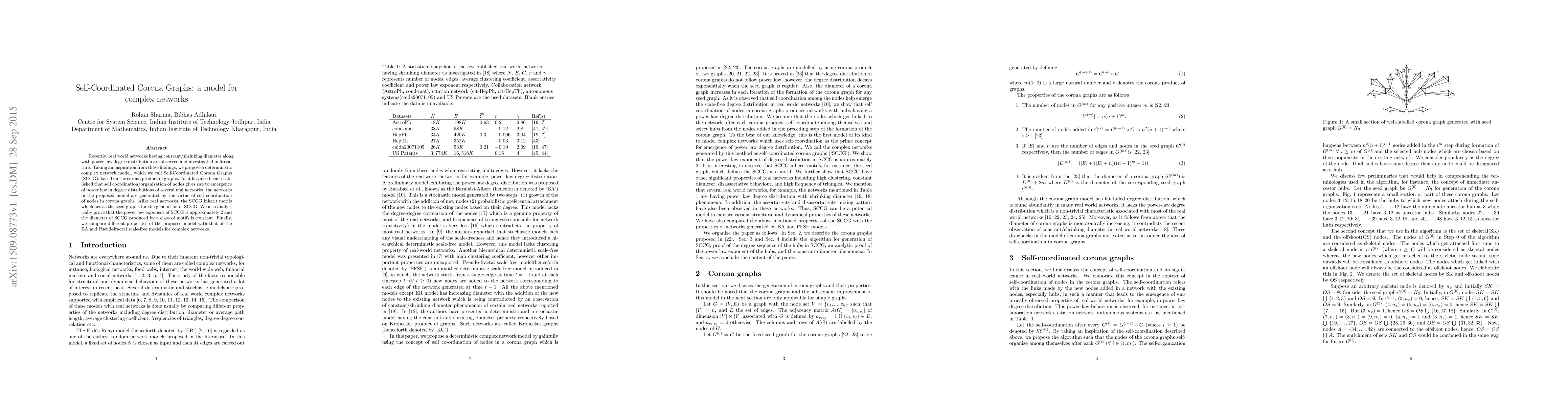 Researchers propose a new model for complex networks called Self-Coordinated Corona Graphs (SCCG), which generates power-law degree distributions with a constant diameter, similar to observed real-world networks.