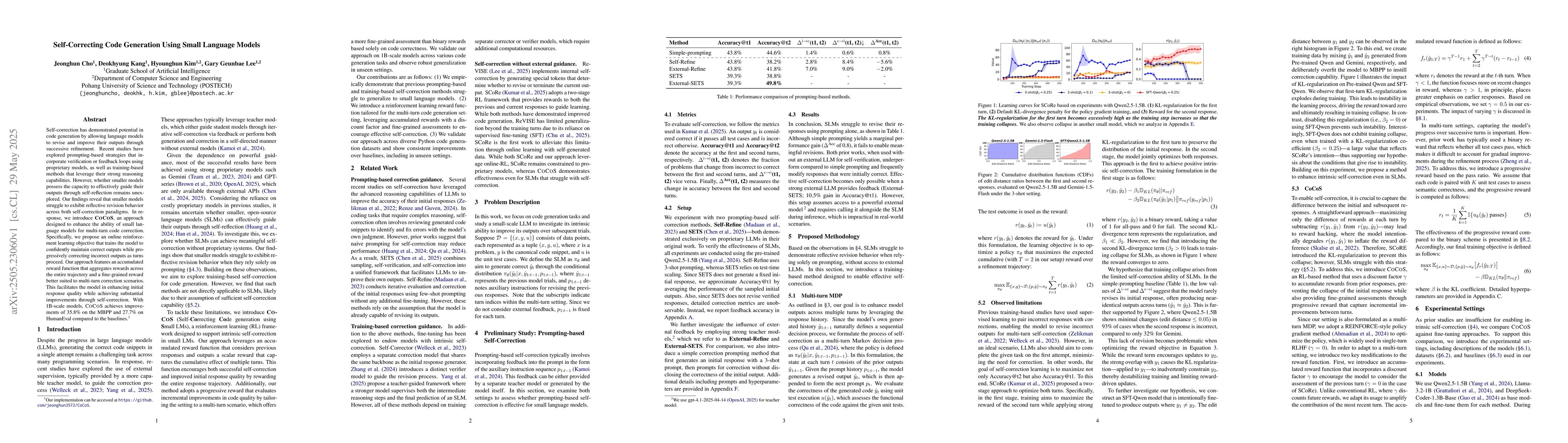 Researchers developed an approach called CoCoS to enhance small language models' ability for multi-turn code correction through self-reflection, achieving 35.8% improvement on one benchmark.