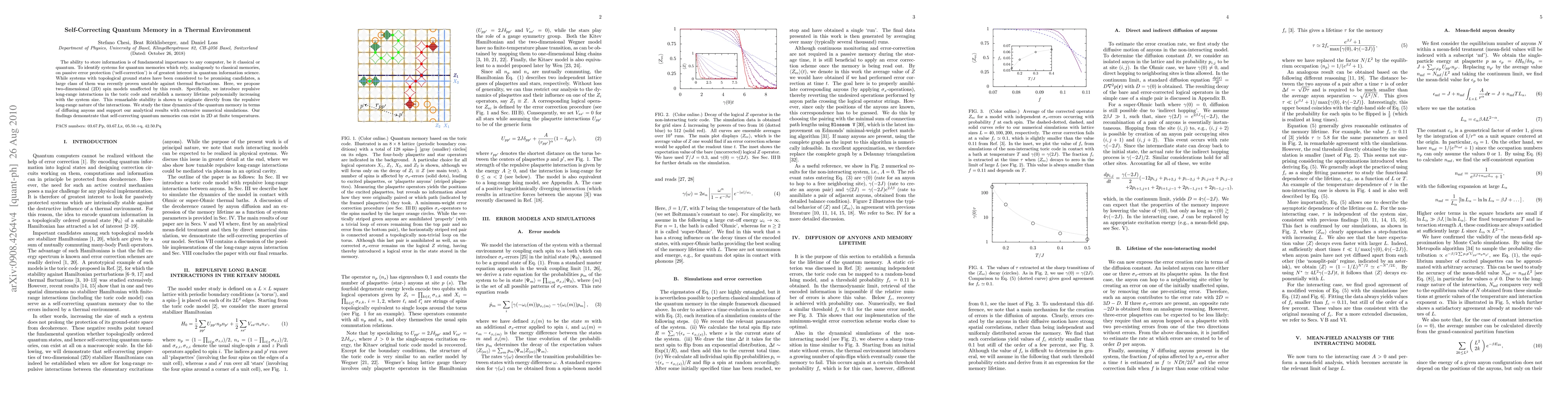 Researchers propose a self-correcting quantum memory system using 2D spin models with repulsive long-range interactions, which remain stable in thermal environments and can store information at finite temperatures.