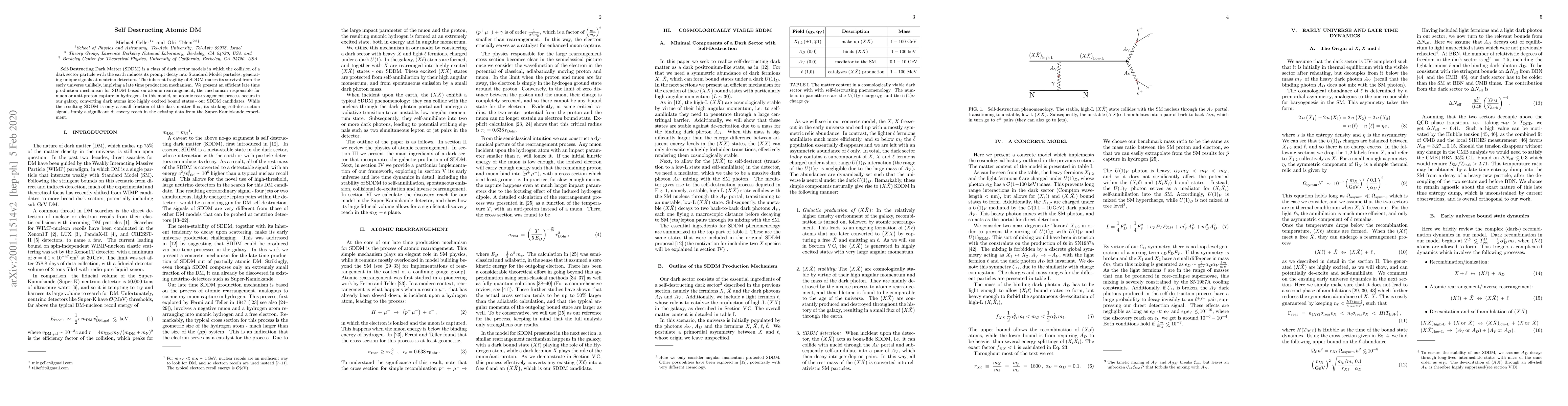 Self-Destructing Dark Matter (SDDM) is a class of dark sector models in which the collision of a dark sector particle with the earth induces its prompt decay into Standard Model particles, generating unique signals at neutrino detectors. The inherent fragility of SDDM makes its survival from the early universe unlikely, implying a late time production mechanism. We present an efficient late time production mechanism for SDDM based on atomic rearrangement, the mechanism responsible for muon or anti-proton capture in hydrogen. In this model, an atomic rearrangement process occurs in our galaxy, converting dark atoms into highly excited bound states - our SDDM candidates. While the resulting SDDM is only a small fraction of the dark matter flux, its striking self-destruction signals imply a significant discovery reach in the existing data from the Super-Kamiokande experiment.