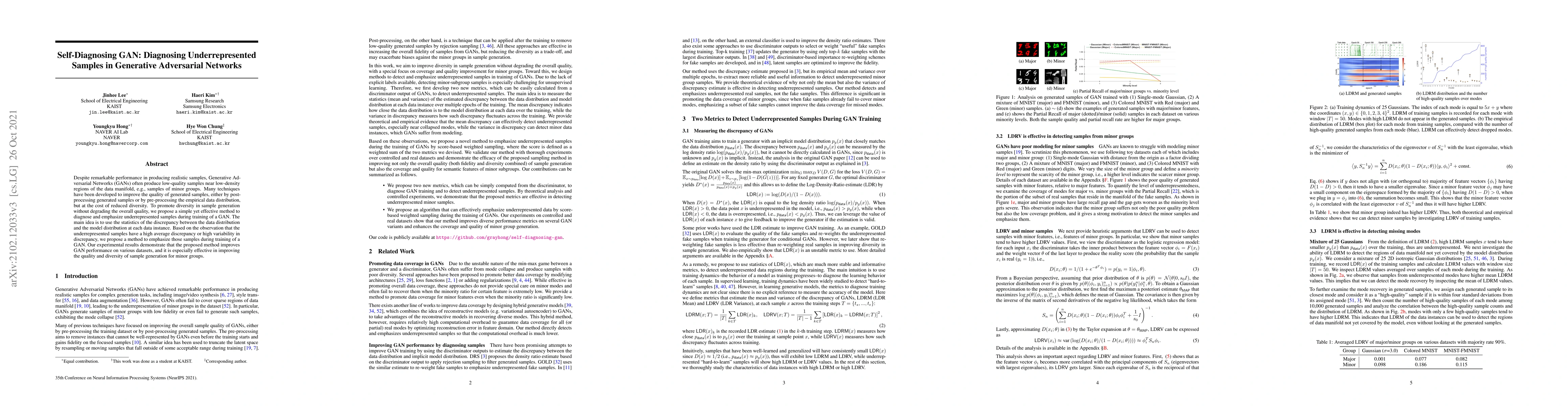 This paper proposes a method to diagnose and emphasize underrepresented samples in Generative Adversarial Networks (GANs) by leveraging the discrepancy between data and model distributions. The approach enhances GAN performance, particularly for minor groups, improving both sample quality and diversity without compromising overall generation quality.