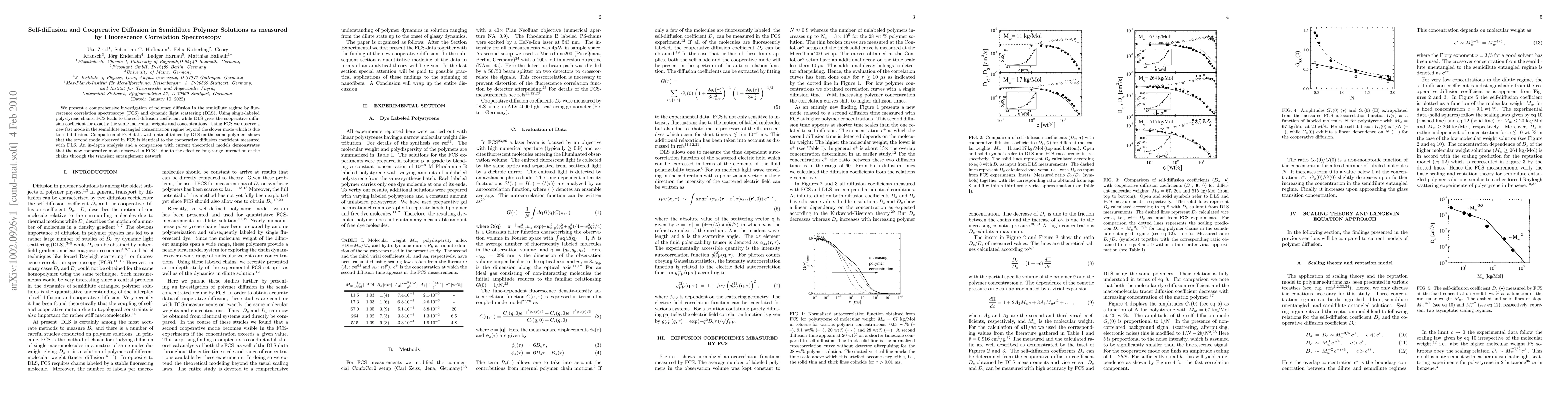 This paper investigates polymer diffusion in semidilute solutions using fluorescence correlation spectroscopy (FCS) and dynamic light scattering (DLS), revealing a new fast diffusion mode in FCS due to cooperative diffusion, which aligns with DLS measurements and is attributed to the transient entanglement network.
