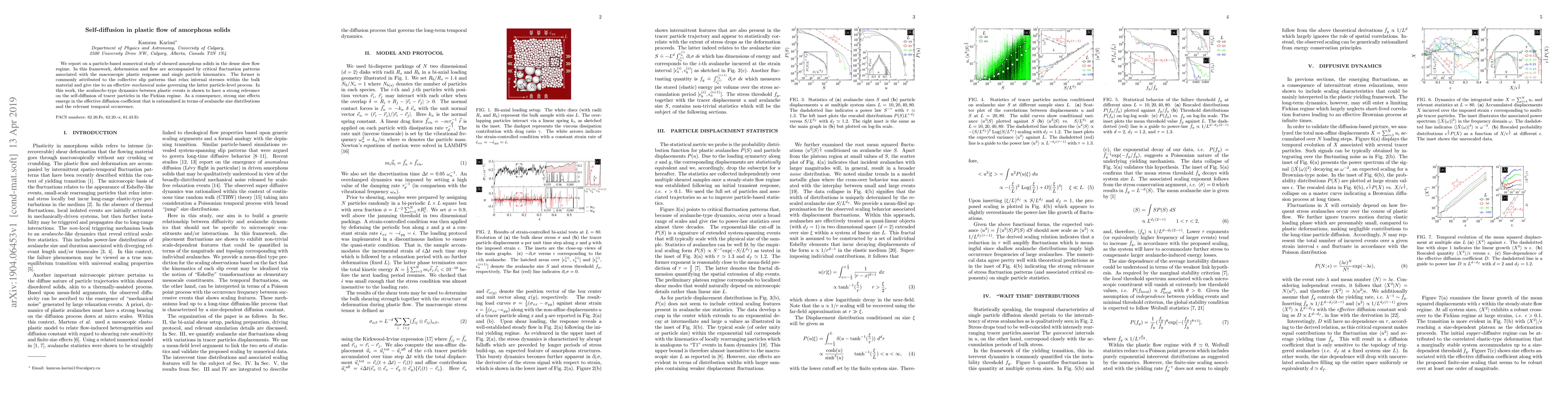 We report on a particle-based numerical study of sheared amorphous solids in the dense slow flow regime. In this framework, deformation and flow are accompanied by critical fluctuation patterns associated with the macroscopic plastic response and single particle kinematics. The former is commonly attributed to the collective slip patterns that relax internal stresses within the bulk material and give rise to an effective mechanical noise governing the latter particle-level process. In this work, the avalanche-type dynamics between plastic events is shown to have a strong relevance on the self-diffusion of tracer particles in the Fickian regime. As a consequence, strong size effects emerge in the effective diffusion coefficient that is rationalized in terms of avalanche size distributions and the relevant temporal occurrence.