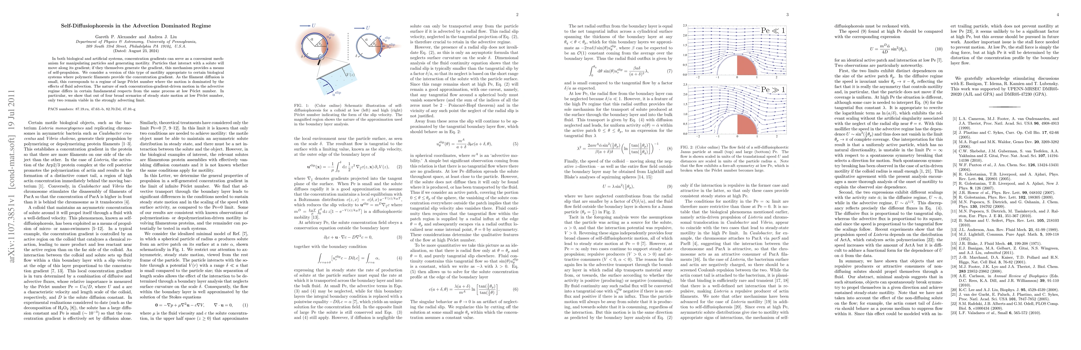 This paper investigates self-diffusiophoresis in systems where fluid advection dominates, focusing on the motility of particles generating concentration gradients via polymeric filaments. It reveals that in the advection-dominated regime, only two out of four possible steady-state motion scenarios observed at low P\'eclet numbers remain feasible.