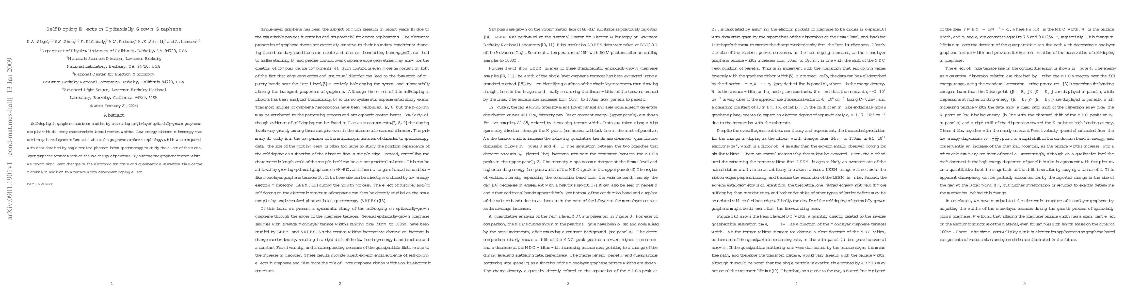 This study investigates self-doping effects in epitaxially grown graphene by examining samples with varying terrace widths, revealing significant changes in electronic structure and quasiparticle relaxation time, alongside a terrace width-dependent doping effect. Techniques such as low energy electron microscopy and angle-resolved photoemission spectroscopy were employed to analyze the surface morphology and electronic properties.