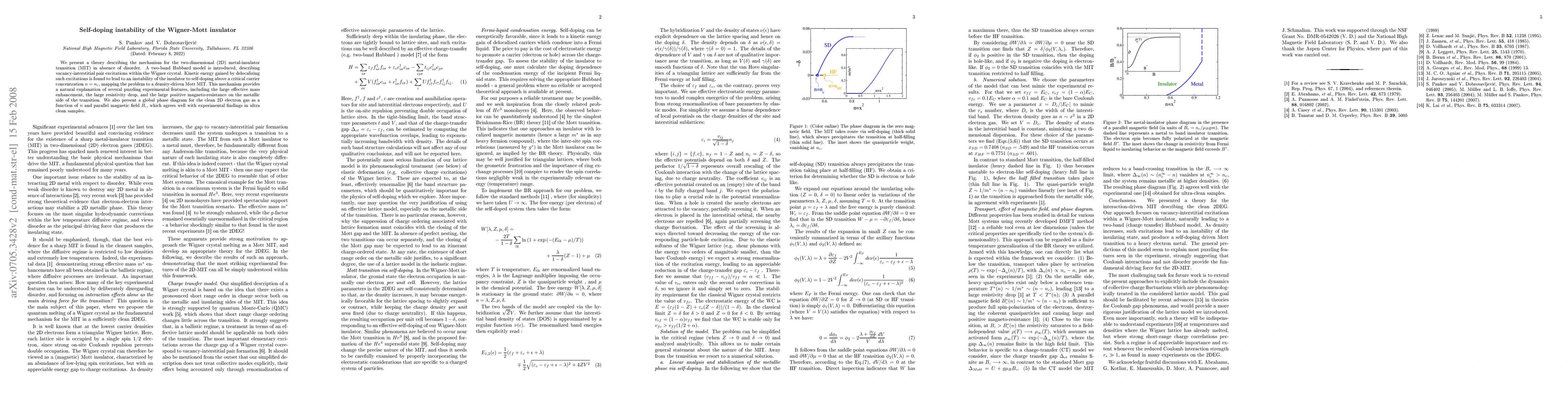 This paper presents a theoretical framework for the metal-insulator transition in 2D systems without disorder, attributing the transition to self-doping instability in a two-band Hubbard model. The model explains experimental observations like large effective mass enhancement and significant magneto-resistance in the metallic phase.