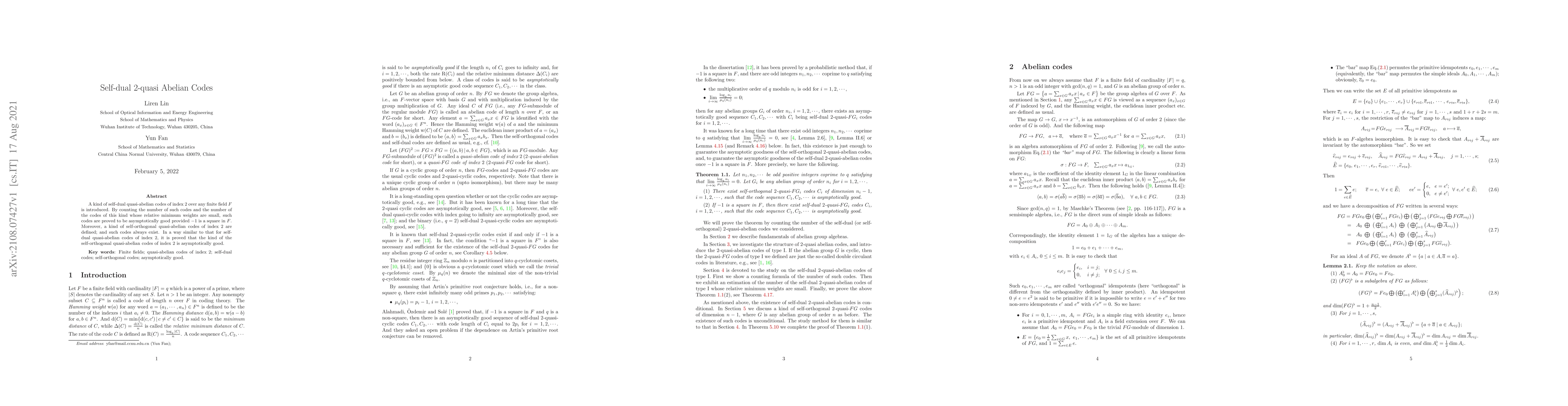 This paper introduces self-dual and self-orthogonal quasi-abelian codes of index 2 over finite fields, proving that they are asymptotically good when -1 is a square in the field. It also demonstrates the existence of self-orthogonal quasi-abelian codes and proves their asymptotic goodness.
