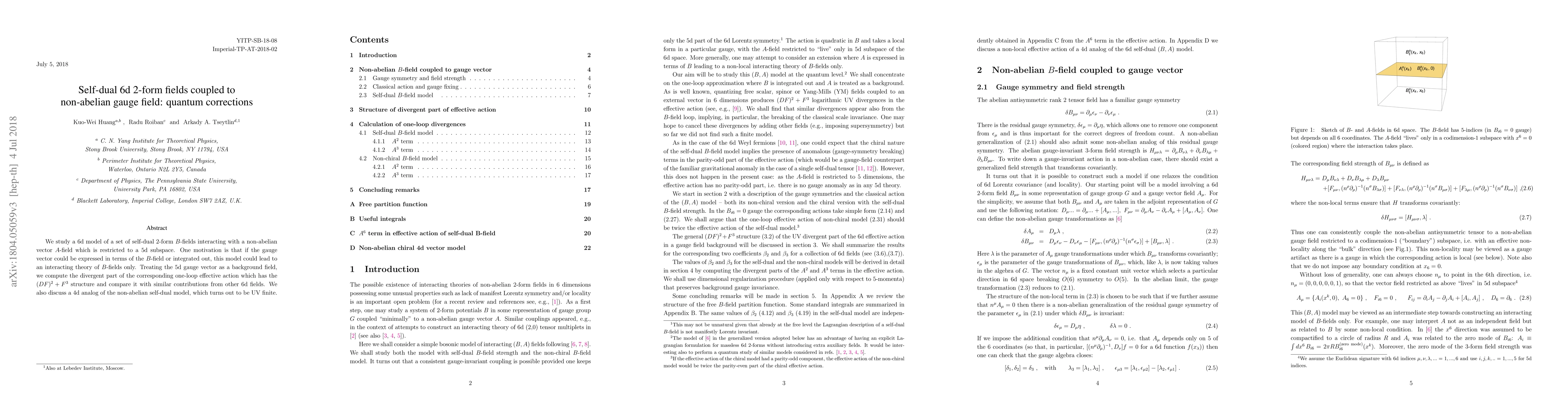 Researchers study a 6D model of self-dual 2-form fields interacting with non-abelian gauge fields, finding a divergent one-loop effective action with a $(DF)^2+F^3$ structure, which could lead to an interacting theory of $B$-fields only.