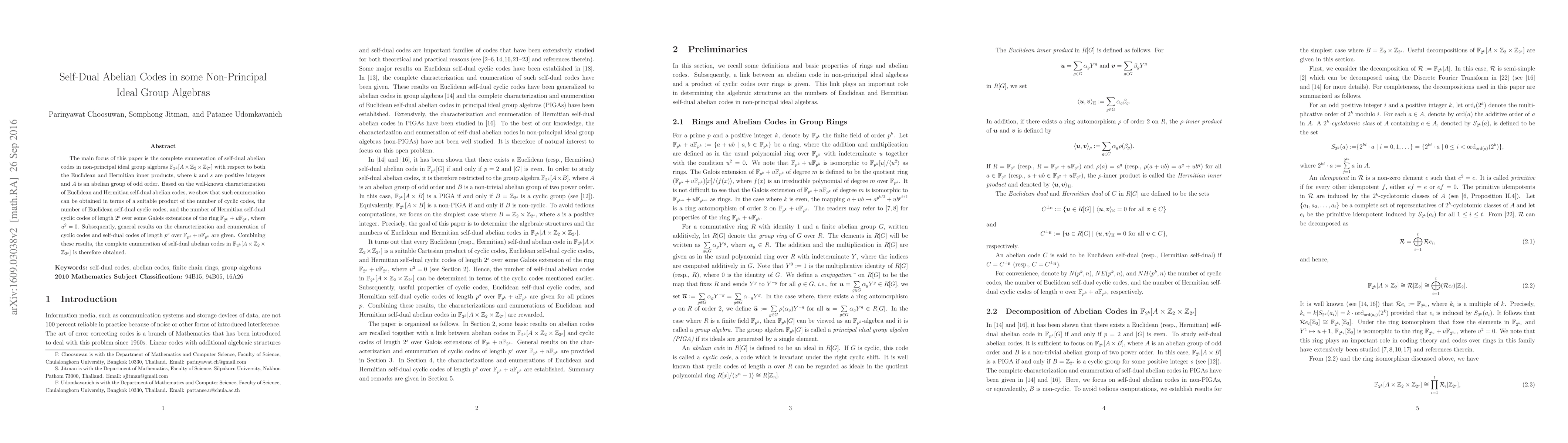 The main focus of this paper is the complete enumeration of self-dual abelian codes in non-principal ideal group algebras $\mathbb{F}_{2^k}[A\times \mathbb{Z}_2\times \mathbb{Z}_{2^s}]$ with respect to both the Euclidean and Hermitian inner products, where $k$ and $s$ are positive integers and $A$ is an abelian group of odd order. Based on the well-know characterization of Euclidean and Hermitian self-dual abelian codes, we show that such enumeration can be obtained in terms of a suitable product of the number of cyclic codes, the number of Euclidean self-dual cyclic codes, and the number of Hermitian self-dual cyclic codes of length $2^s$ over some Galois extensions of the ring $\mathbb{F}_{2^k}+u\mathbb{F}_{2^k}$, where $u^2=0$. Subsequently, general results on the characterization and enumeration of cyclic codes and self-dual codes of length $p^s$ over $\mathbb{F}_{p^k}+u\mathbb{F}_{p^k}$ are given. Combining these results, the complete enumeration of self-dual abelian codes in $\mathbb{F}_{2^k}[A\times \mathbb{Z}_2\times \mathbb{Z}_{2^s}]$ is therefore obtained.