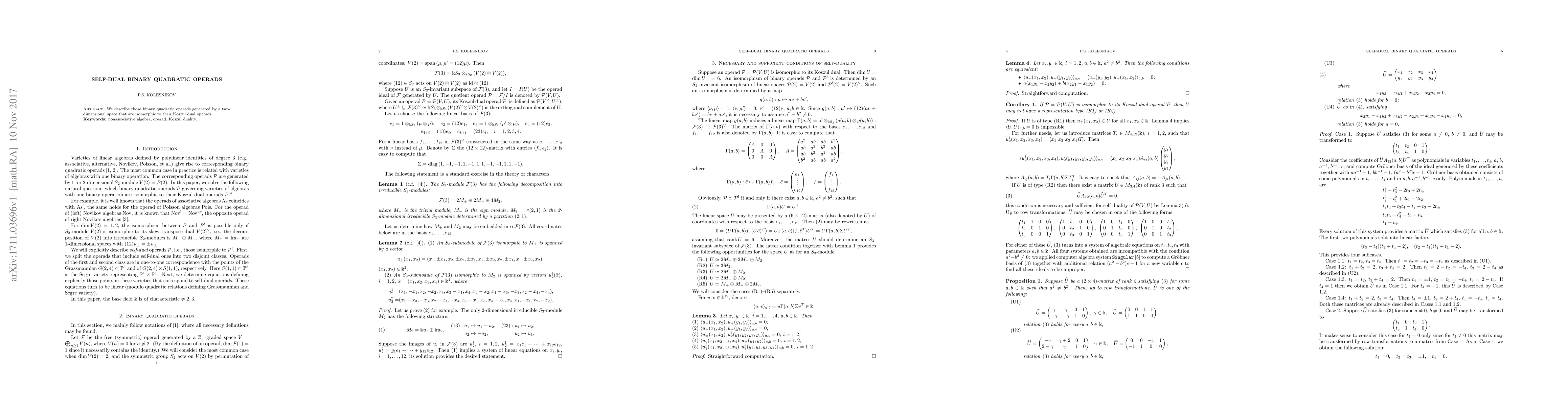 We describe those binary quadratic operads generated by a two-dimensional space that are isomorphic to their Koszul dual operads.