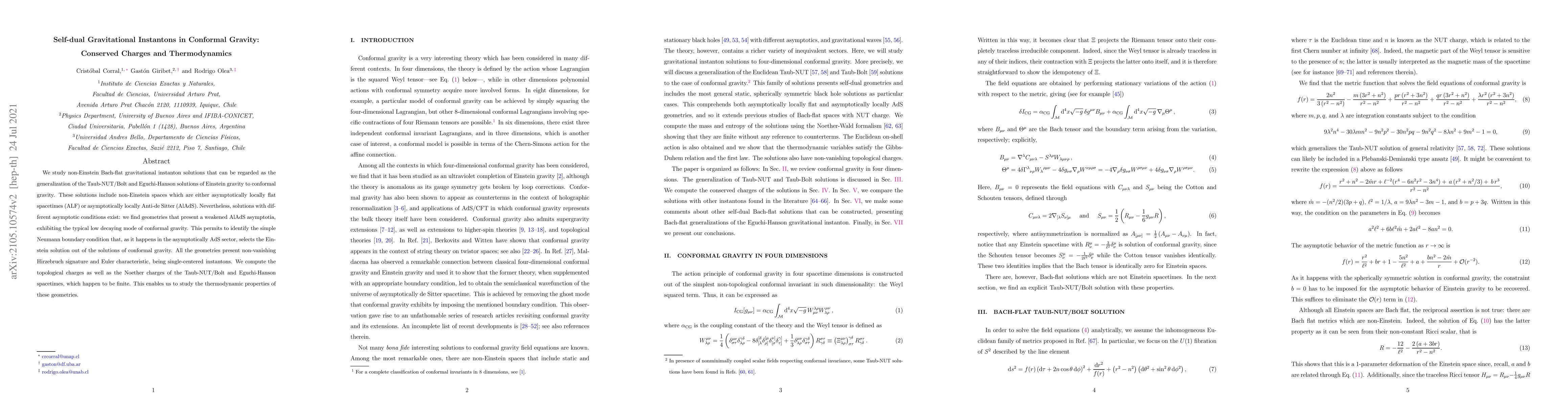 We study non-Einstein Bach-flat gravitational instanton solutions that can be regarded as the generalization of the Taub-NUT/Bolt and Eguchi-Hanson solutions of Einstein gravity to conformal gravity. These solutions include non-Einstein spaces which are either asymptotically locally flat spacetimes (ALF) or asymptotically locally Anti-de Sitter (AlAdS). Nevertheless, solutions with different asymptotic conditions exist: we find geometries that present a weakened AlAdS asymptotia, exhibiting the typical low decaying mode of conformal gravity. This permits to identify the simple Neumann boundary condition that, as it happens in the asymptotically AdS sector, selects the Einstein solution out of the solutions of conformal gravity. All the geometries present non-vanishing Hirzebruch signature and Euler characteristic, being single-centered instantons. We compute the topological charges as well as the Noether charges of the Taub-NUT/Bolt and Eguchi-Hanson spacetimes, which happen to be finite. This enables us to study the thermodynamic properties of these geometries.