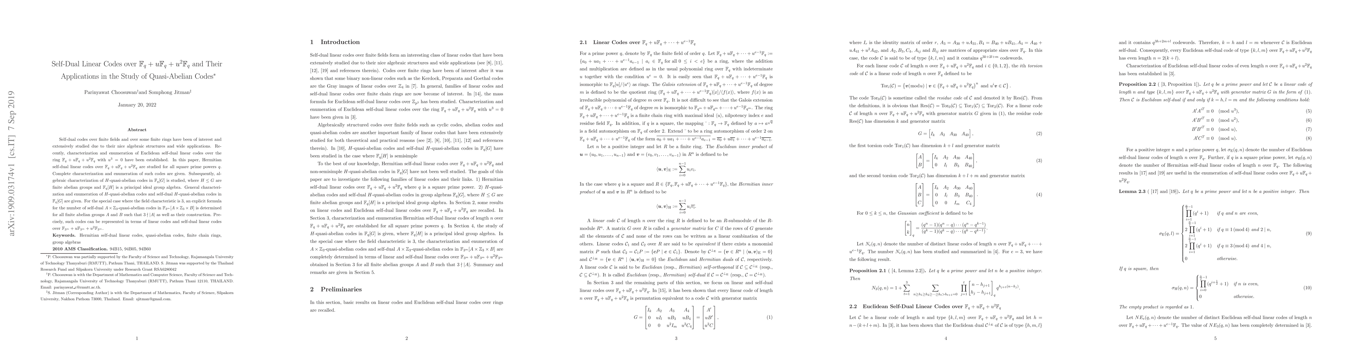 This paper studies Hermitian self-dual linear codes over the ring $\mathbb{F}_{q}+u\mathbb{F}_{q}+u^2\mathbb{F}_{q}$ for all square prime powers $q$, providing complete characterization and enumeration. It also characterizes $H$-quasi-abelian codes in $\mathbb{F}_q[G]$ and determines explicit formulas for self-dual $A\times \mathbb{Z}_3$-quasi-abelian codes in $\mathbb{F}_{3^m}[A\times \mathbb{Z}_3\times B]$ when the field characteristic is 3.