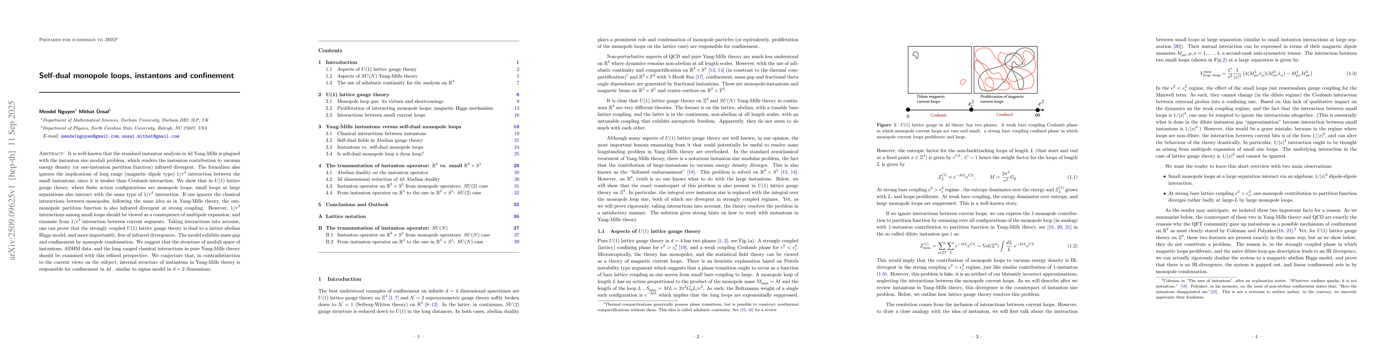 It is well-known that the standard instanton analysis in 4d Yang-Mills is plagued with the instanton size moduli problem, which renders the instanton contribution to vacuum energy density (or one-instanton partition function) infrared divergent. The formalism also ignores the implications of long range (magnetic dipole type) $1/r^4$ interaction between the small instantons, since it is weaker than Coulomb interaction. We show that in $U(1)$ lattice gauge theory, where finite action configurations are monopole loops, small loops at large separations also interact with the same type of $1/r^4$ interaction. If one ignores the classical interactions between monopoles, following the same idea as in Yang-Mills theory, the one-monopole partition function is also infrared divergent at strong coupling. However, $1/r^4$ interactions among small loops should be viewed as a consequence of multipole expansion, and emanate from $1/r^2$ interaction between current segments. Taking interactions into account, one can prove that the strongly coupled $U(1)$ lattice gauge theory is dual to a lattice abelian Higgs model, and more importantly, free of infrared divergences. The model exhibits mass gap and confinement by monopole condensation. We suggest that the structure of moduli space of instantons, ADHM data, and the long ranged classical interactions in pure Yang-Mills theory should be examined with this refined perspective. We conjecture that, in contradistinction to the current views on the subject, internal structure of instantons in Yang-Mills theory is responsible for confinement in $4d$ , similar to sigma model in $d=2$ dimensions.