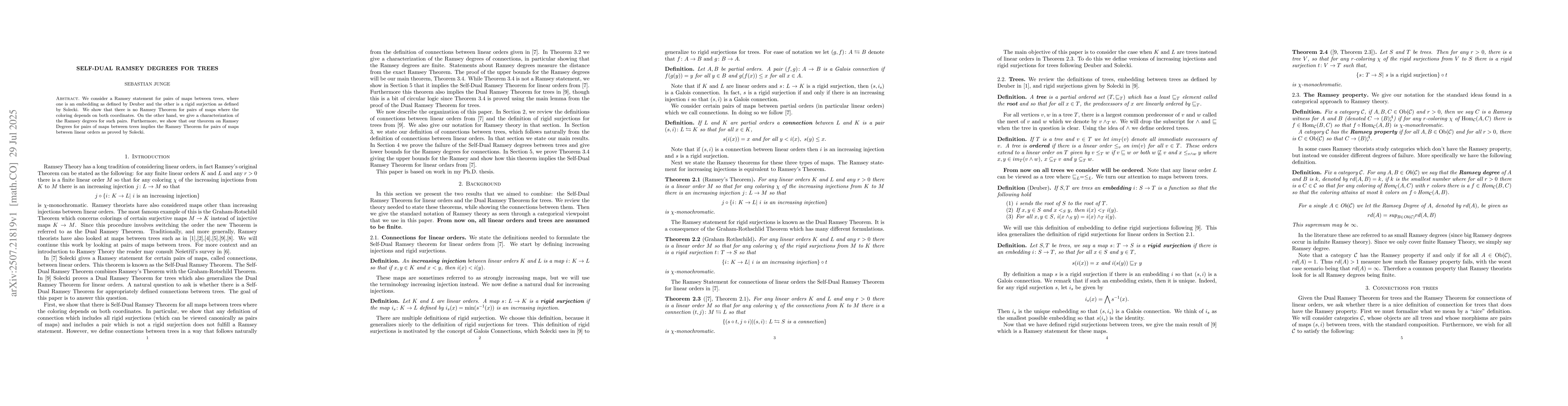 We consider a Ramsey statement for pairs of maps between trees, where one is an embedding as defined by Deuber and the other is a rigid surjection as defined by Solecki. We show that there is no Ramsey Theorem for pairs of maps where the coloring depends on both coordinates. On the other hand, we give a characterization of the Ramsey degrees for such pairs. Furthermore, we show that our theorem on Ramsey Degrees for pairs of maps between trees implies the Ramsey Theorem for pairs of maps between linear orders as proved by Solecki.