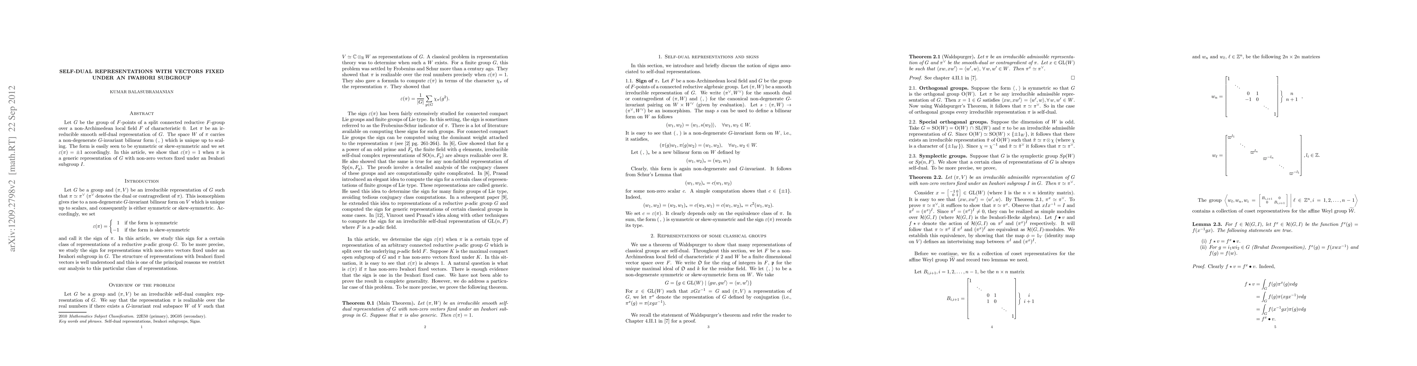 Let $G$ be the group of $F$-points of a split connected reductive $F$-group over a non-Archimedean local field $F$ of characteristic 0. Let $\pi$ be an irreducible smooth self-dual representation of $G$. The space $W$ of $\pi$ carries a non-degenerate $G$-invariant bilinear form $(\,,\,)$ which is unique up to scaling. The form is easily seen to be symmetric or skew-symmetric and we set $\varepsilon({\pi})=\pm 1$ accordingly. In this article, we show that $\varepsilon{(\pi)}=1$ when $\pi$ is a generic representation of $G$ with non-zero vectors fixed under an Iwahori subgroup $I$.