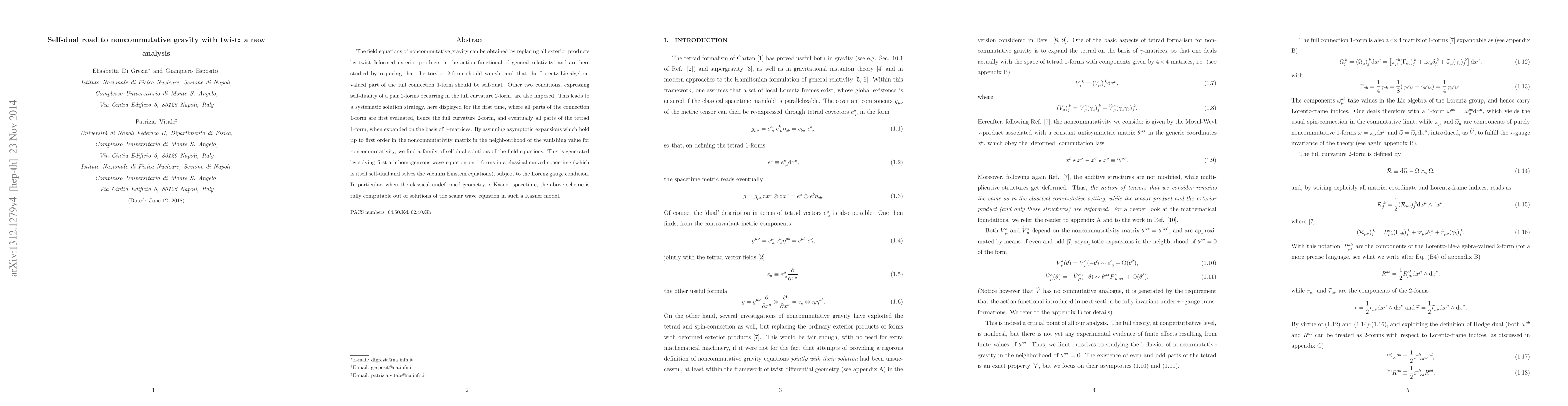 The paper introduces a novel method for deriving field equations of noncommutative gravity using twist-deformed exterior products and presents a self-dual solution scheme based on asymptotic expansions.