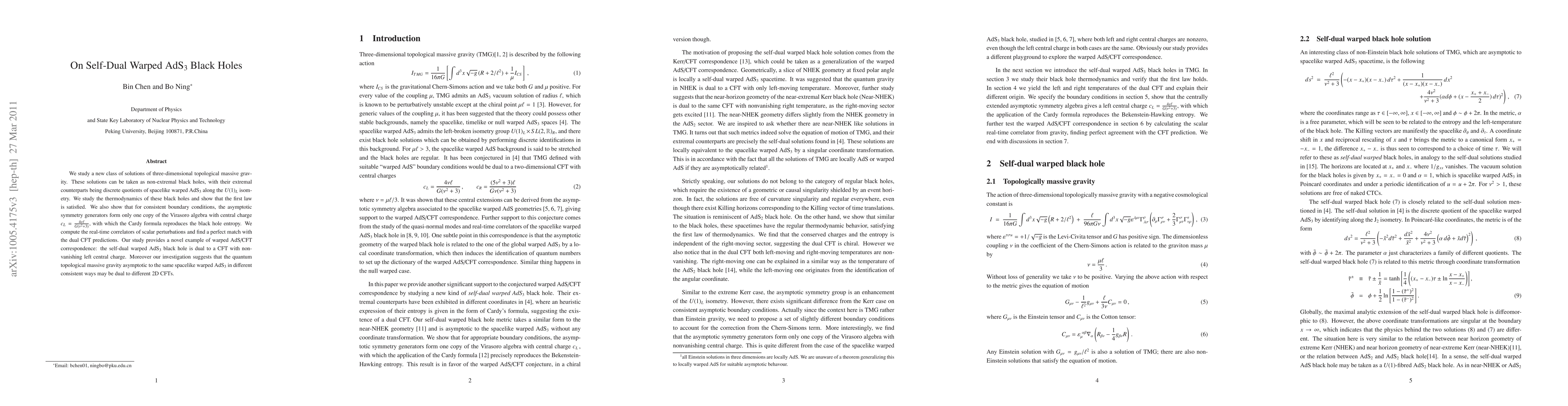 The paper presents a detailed analysis of self-dual warped AdS3 black holes in TMG, including their thermodynamics, asymptotic symmetries, and dual CFT predictions, thereby contributing to the understanding of topological massive gravity and warped AdS/CFT correspondence.