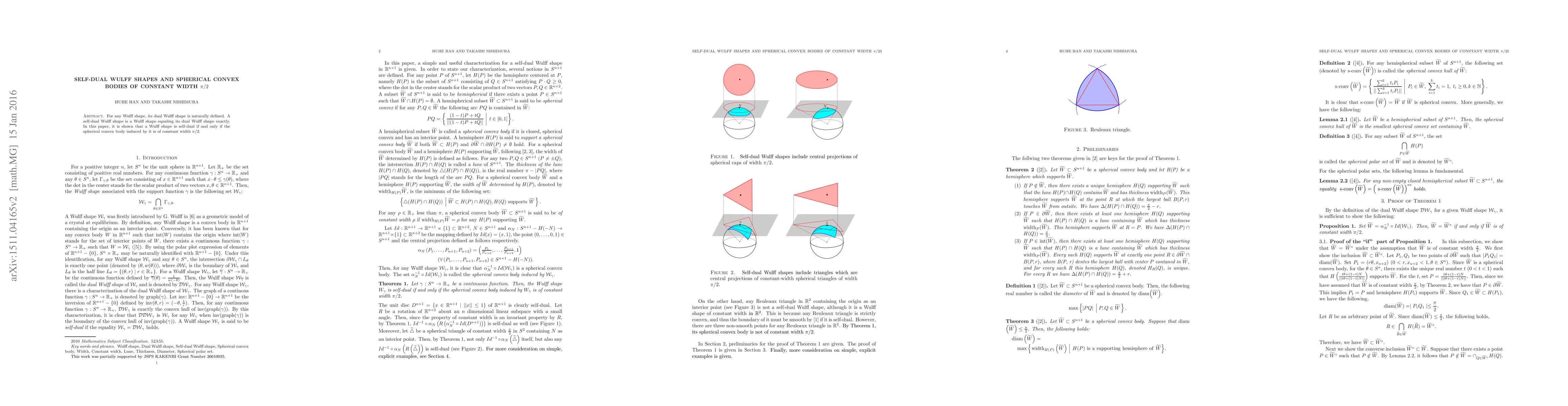 A Wulff shape is self-dual if its induced spherical convex body has a constant width of π/2.
