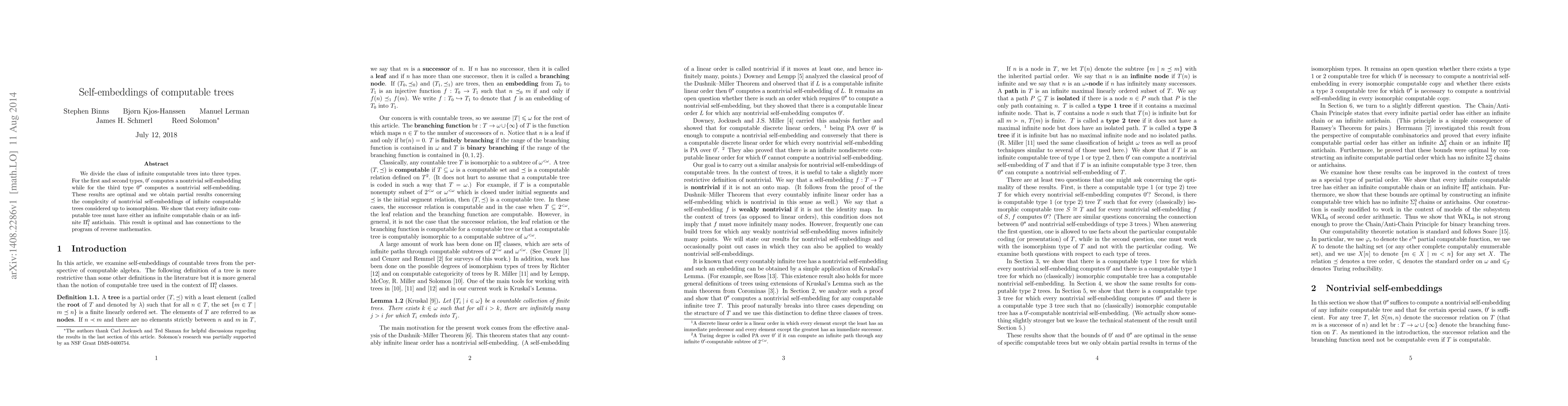The paper introduces a novel classification of infinite computable trees and provides optimal bounds on the computational strength required for nontrivial self-embeddings, linking these findings to reverse mathematics.