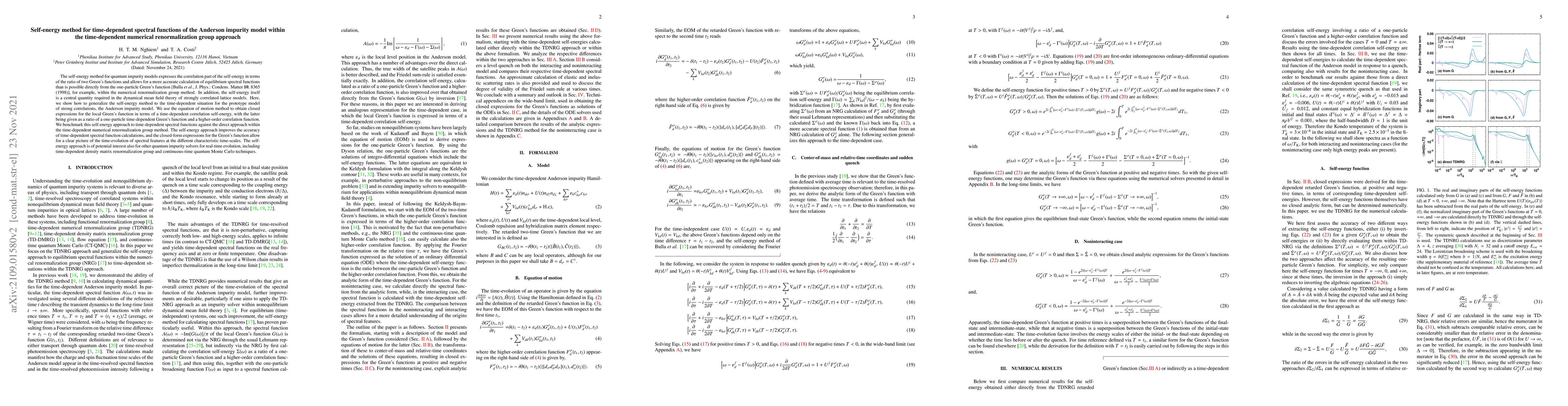 This paper presents a self-energy method for calculating the time-dependent spectral functions of the Anderson impurity model using the time-dependent numerical renormalization group approach. The self-energy method provides more accurate results than direct methods by relating the correlation part of the self-energy to Green's functions, offering clear insights into the time-evolution of spectral features.