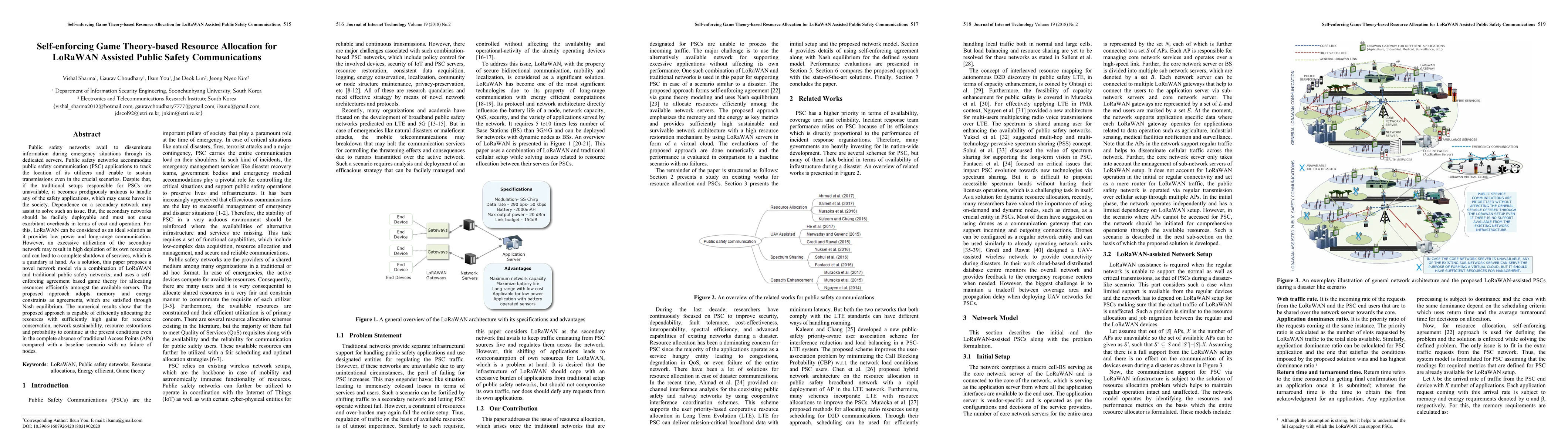 A new network model combining LoRaWAN and public safety networks uses game theory to efficiently allocate resources and conserve energy in emergency situations, achieving high resource conservation gains.