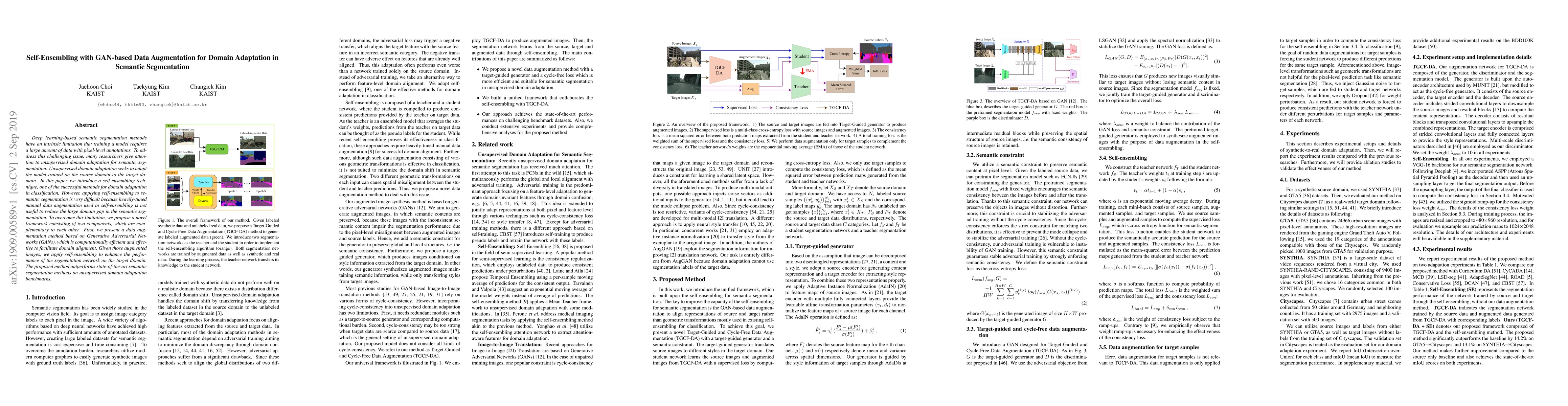 This paper proposes a self-ensembling technique combined with GAN-based data augmentation for unsupervised domain adaptation in semantic segmentation, achieving superior performance compared to existing methods. The framework leverages GANs for effective domain alignment and self-ensembling to enhance segmentation on the target domain.
