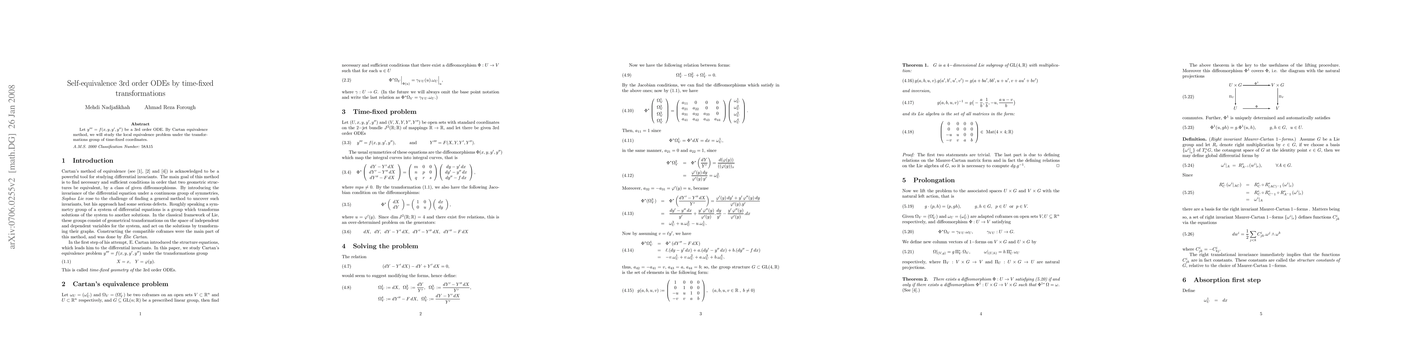 Let y''' = f(x, y, y', y'') be a 3rd order ODE. By Cartan equivalence method, we will study the local equivalence problem under the transformations group of time-fixed coordinates.