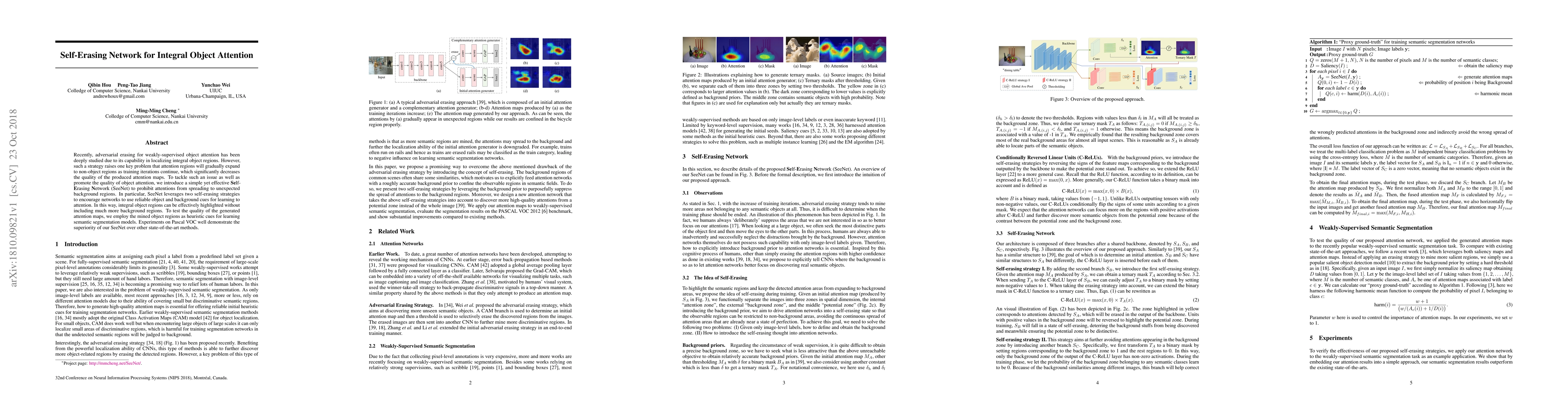 The Self-Erasing Network (SeeNet) addresses the issue of expanding attention regions in weakly-supervised object attention by employing two self-erasing strategies to highlight integral object regions without including background areas. Experiments on Pascal VOC show SeeNet's superior performance over other methods.