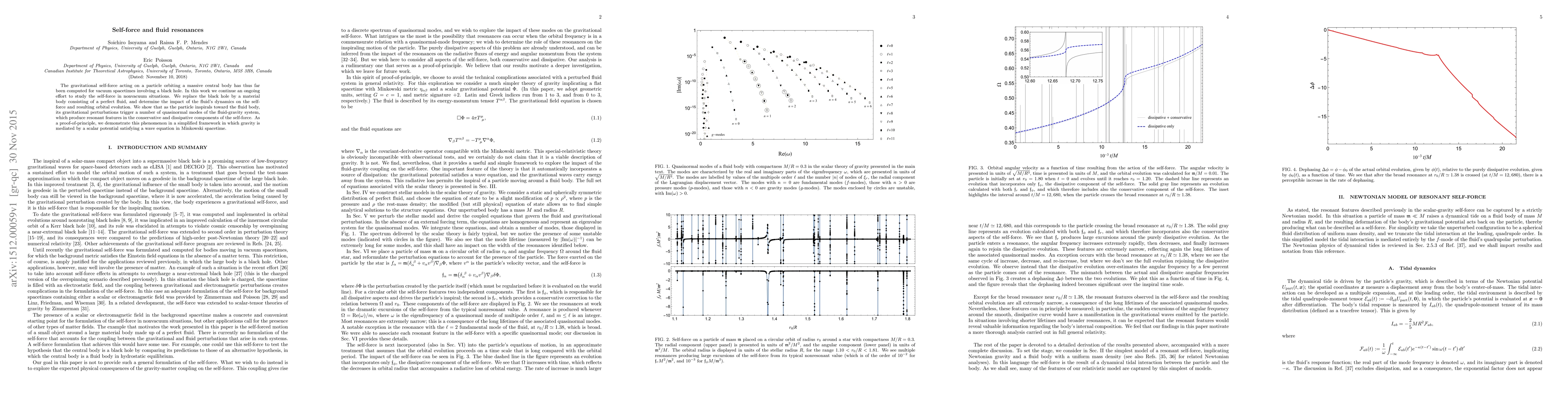 This research explores the gravitational self-force on a particle orbiting a fluid body instead of a black hole, revealing that the particle's motion excites quasinormal modes in the fluid-gravity system, causing resonant features in the self-force. The study demonstrates this in a simplified scalar-potential model within Minkowski spacetime.