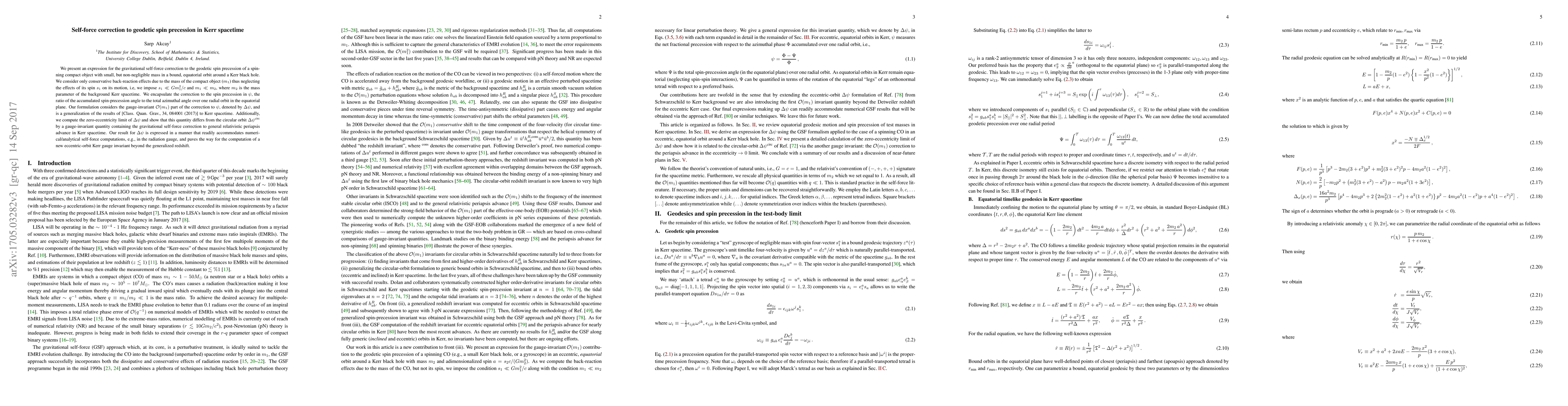 This paper derives a gravitational self-force correction to the geodetic spin precession of a spinning compact object in a bound equatorial orbit around a Kerr black hole, focusing on conservative back-reaction effects due to the object's mass. It generalizes previous results to Kerr spacetime and computes the zero-eccentricity limit, revealing differences from circular orbit cases due to self-force effects on periapsis advance.