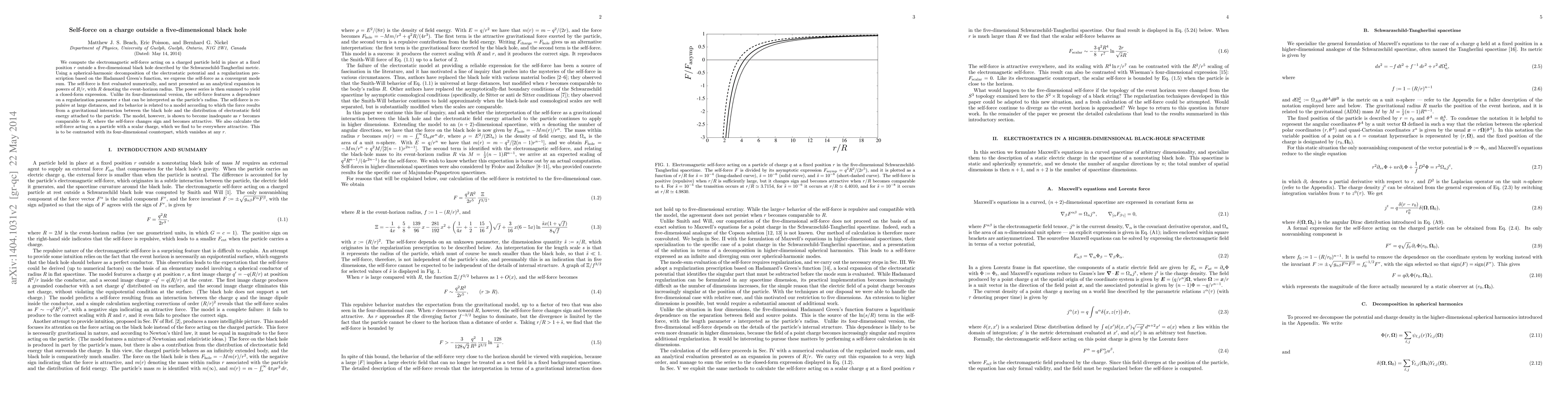 This paper computes the electromagnetic self-force on a charged particle near a five-dimensional black hole, revealing a repulsive force at large distances that becomes attractive as the particle approaches the event horizon. The self-force is expressed analytically and depends on a regularization parameter interpreted as the particle's radius.