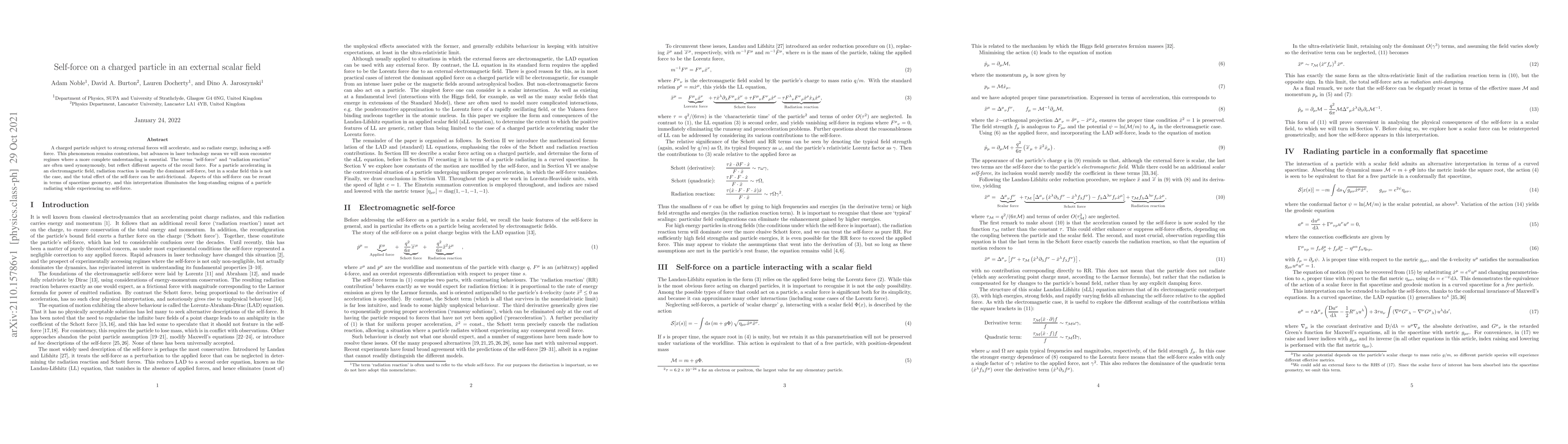 A charged particle subject to strong external forces will accelerate, and so radiate energy, inducing a self-force. This phenomenon remains contentious, but advances in laser technology mean we will soon encounter regimes where a more complete understanding is essential. The terms "self-force" and "radiation reaction" are often used synonymously, but reflect different aspects of the recoil force. For a particle accelerating in an electromagnetic field, radiation reaction is usually the dominant self-force, but in a scalar field this is not the case, and the total effect of the self-force can be anti-frictional. Aspects of this self-force can be recast in terms of spacetime geometry, and this interpretation illuminates the long-standing enigma of a particle radiating while experiencing no self-force.