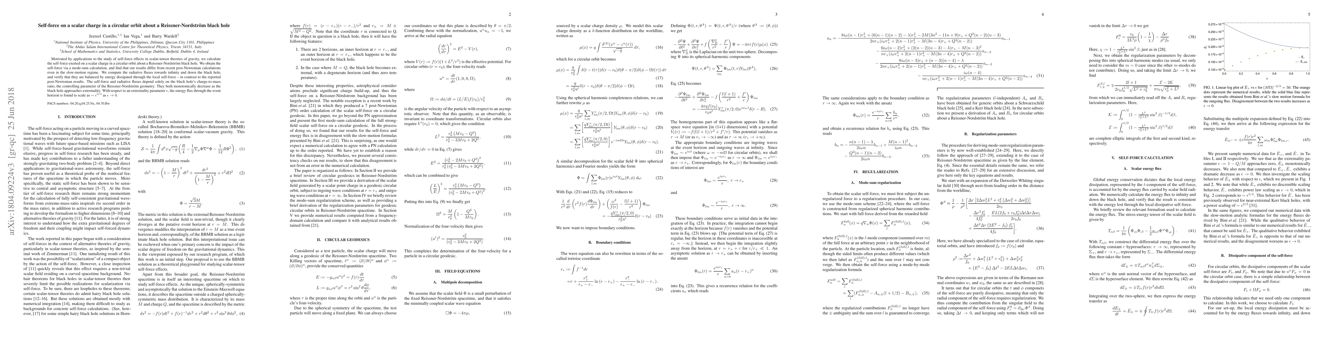 This paper calculates the self-force on a scalar charge in a circular orbit around a Reissner-Nordström black hole, finding discrepancies with recent post-Newtonian results. It shows that energy dissipation through the self-force balances radiative fluxes, scaling with the black hole's charge-to-mass ratio and decreasing towards extremality.