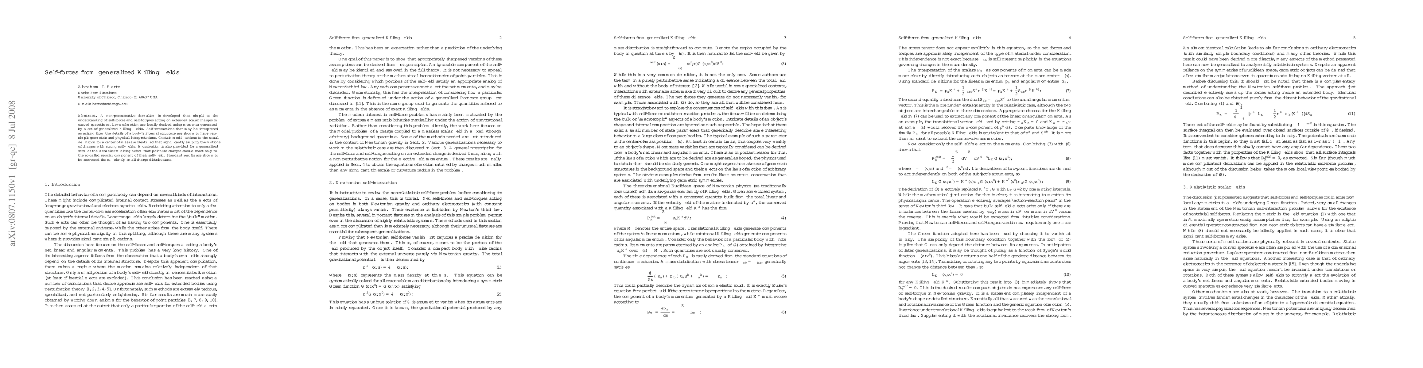 A non-perturbative formalism is developed that simplifies the understanding of self-forces and self-torques acting on extended scalar charges in curved spacetimes. Laws of motion are locally derived using momenta generated by a set of generalized Killing fields. Self-interactions that may be interpreted as arising from the details of a body's internal structure are shown to have very simple geometric and physical interpretations. Certain modifications to the usual definition for a center-of-mass are identified that significantly simplify the motions of charges with strong self-fields. A derivation is also provided for a generalized form of the Detweiler-Whiting axiom that pointlike charges should react only to the so-called regular component of their self-field. Standard results are shown to be recovered for sufficiently small charge distributions.
