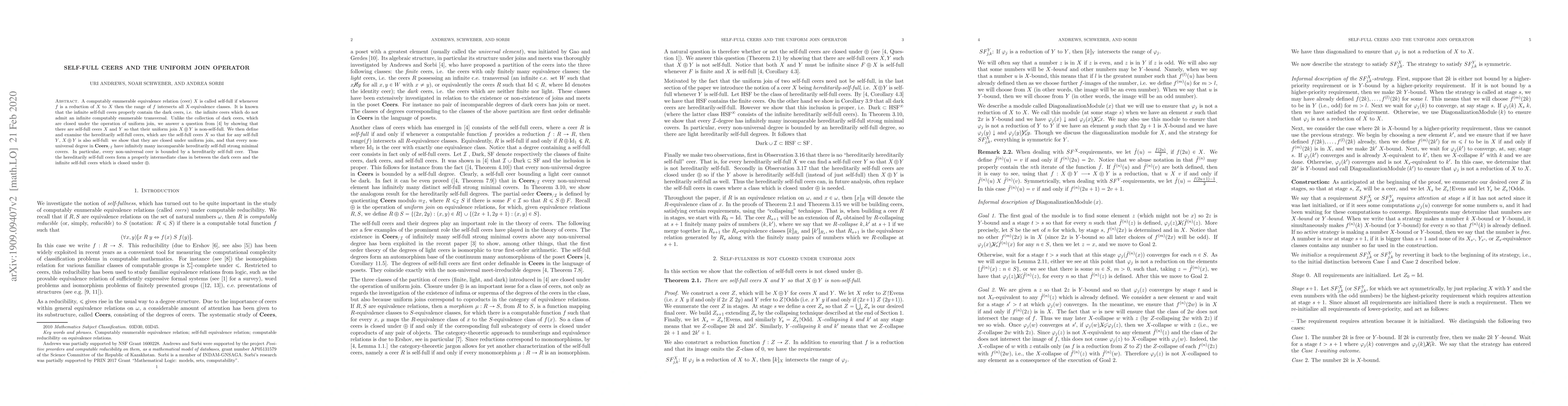 A computably enumerable equivalence relation (ceer) $X$ is called self-full if whenever $f$ is a reduction of $X$ to $X$ then the range of $f$ intersects all $X$-equivalence classes. It is known that the infinite self-full ceers properly contain the dark ceers, i.e. the infinite ceers which do not admit an infinite computably enumerable transversal. Unlike the collection of dark ceers, which are closed under the operation of uniform join, we answer a question from \cite{joinmeet} by showing that there are self-full ceers $X$ and $Y$ so that their uniform join $X\oplus Y$ is non-self-full. We then define and examine the hereditarily self-full ceers, which are the self-full ceers $X$ so that for any self-full $Y$, $X\oplus Y$ is also self-full: we show that they are closed under uniform join, and that every non-universal degree in $\textrm{Ceers}_{/{\mathcal{I}}}$ have infinitely many incomparable hereditarily self-full strong minimal covers. In particular, every non-universal ceer is bounded by a hereditarily self-full ceer. Thus the hereditarily self-full ceers form a properly intermediate class in between the dark ceers and the infinite self-full ceers which is closed under $\oplus$.