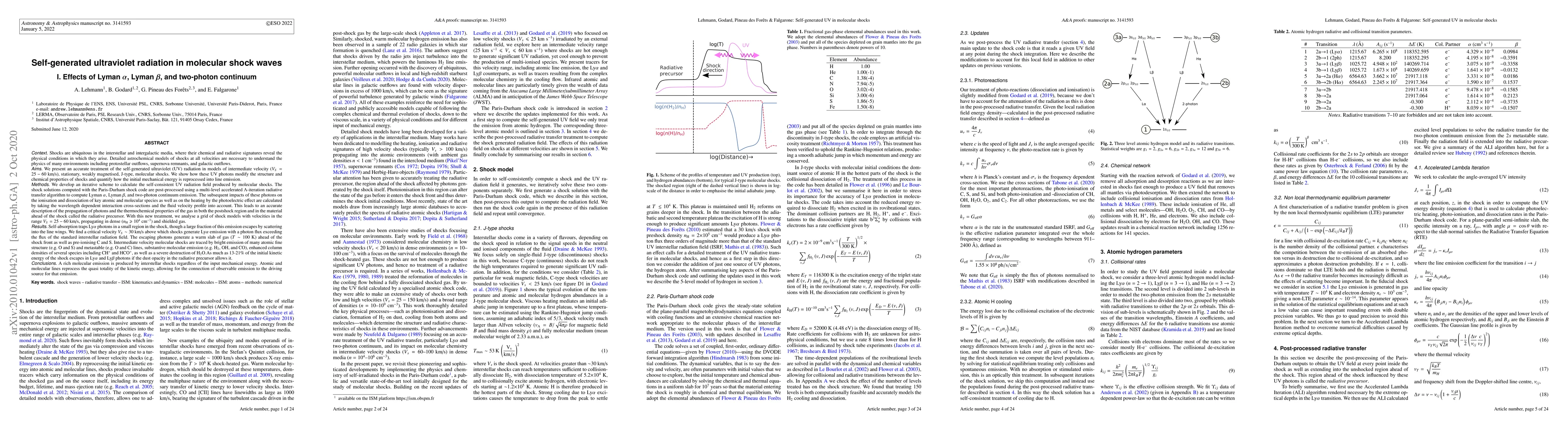 Shocks are ubiquitous in the interstellar and intergalactic media, where their chemical and radiative signatures reveal the physical conditions in which they arise. Detailed astrochemical models of shocks at all velocities are necessary to understand the physics of many environments including protostellar outflows, supernova remnants, and galactic outflows. We present an accurate treatment of the self-generated UV radiation in intermediate velocity, stationary, weakly magnetised, J-type, molecular shocks. Shock solutions computed with the Paris-Durham shock code are post-processed using a multi-level accelerated $\Lambda$-iteration radiative transfer algorithm to compute Ly$\alpha$, Ly$\beta$, and 2-photon continuum emission. The subsequent impacts on the ionisation and dissociation of key atomic and molecular species as well as on the heating by the photoelectric effect take the wavelength dependent cross-sections and the fluid velocity profile into account. We analyse shock models with velocities $V=25-60$ km/s, propagating in dense ($n \geq 10^4$ ${\rm cm}^{-3}$), shielded gas. Self-absorption traps Ly$\alpha$ photons in a small region in the shock, though a large fraction escapes into the line wings. We find a critical velocity $V\sim 30$ km/s above which shocks produce a Ly$\alpha$ photon flux exceeding that of the standard ISRF. The escaping photons generate a warm slab (T~100 K) ahead of the shock as well as pre-ionise C and S. These shocks are traced by bright atomic fine structure (e.g. O and S) and metastable (e.g. O and C) lines, substantive molecular emission (e.g. H2, OH, and CO), enhanced column densities of several species (e.g. CH+ and HCO+), as well as a severe destruction of H2O. As much as 13-21% of the initial kinetic energy of the shock escapes in Ly$\alpha$ and Ly$\beta$ photons if the dust opacity in the radiative precursor allows it.