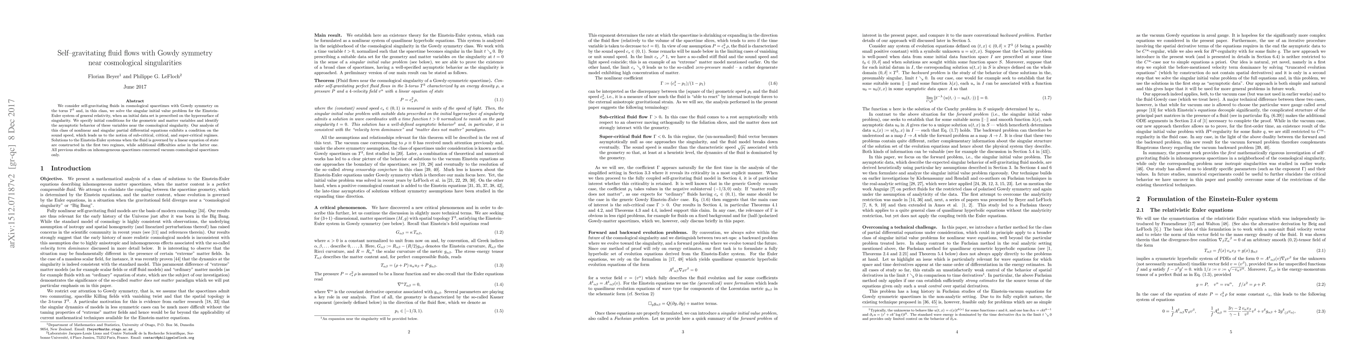 This paper investigates self-gravitating fluid flows in Gowdy symmetric cosmological spacetimes, solving the singular initial value problem for the Einstein-Euler equations near cosmological singularities. It identifies regimes based on sound speed conditions and constructs solutions for sub-critical and critical regimes, while highlighting challenges in the super-critical regime.