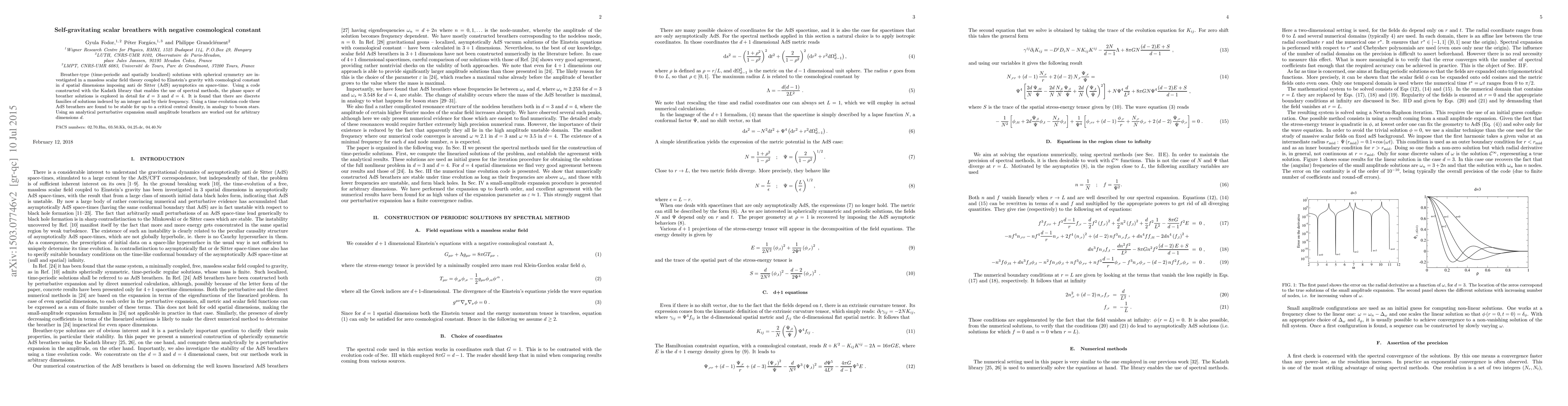 Researchers found discrete families of stable breather solutions in a massless scalar field theory with Einstein's gravity, which can exist up to a critical density. These solutions have spherical symmetry and negative cosmological constant, providing insight into exotic forms of compact stars.