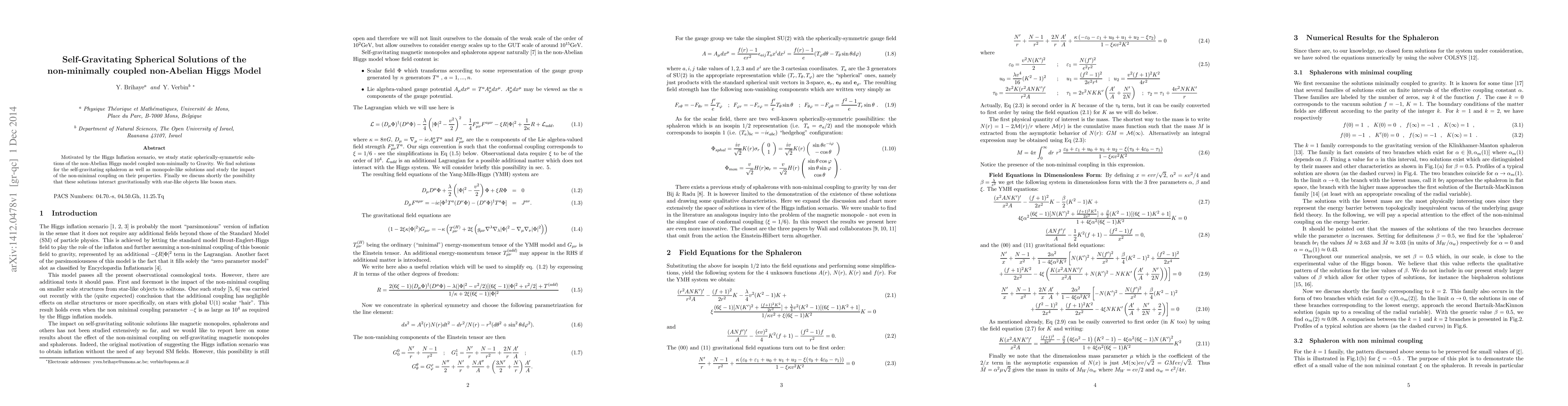 This paper investigates static spherically-symmetric solutions of the non-minimally coupled non-Abelian Higgs model, discovering self-gravitating sphaleron and monopole-like solutions, and examines the effects of non-minimal coupling on these solutions. The study briefly considers the gravitational interactions of these solutions with star-like objects like boson stars.
