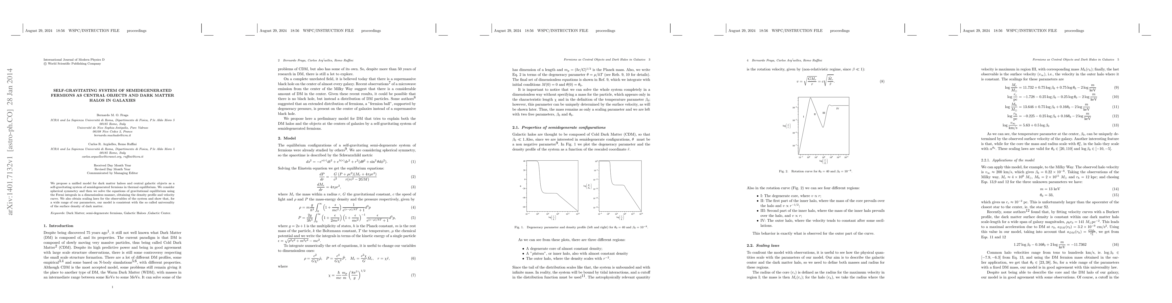 This paper proposes a unified model for dark matter halos and central galactic objects based on a self-gravitating system of semidegenerate fermions in thermal equilibrium. The authors derive density profiles and velocity curves using Fermi integrals and show consistency with the universality of dark matter surface density.