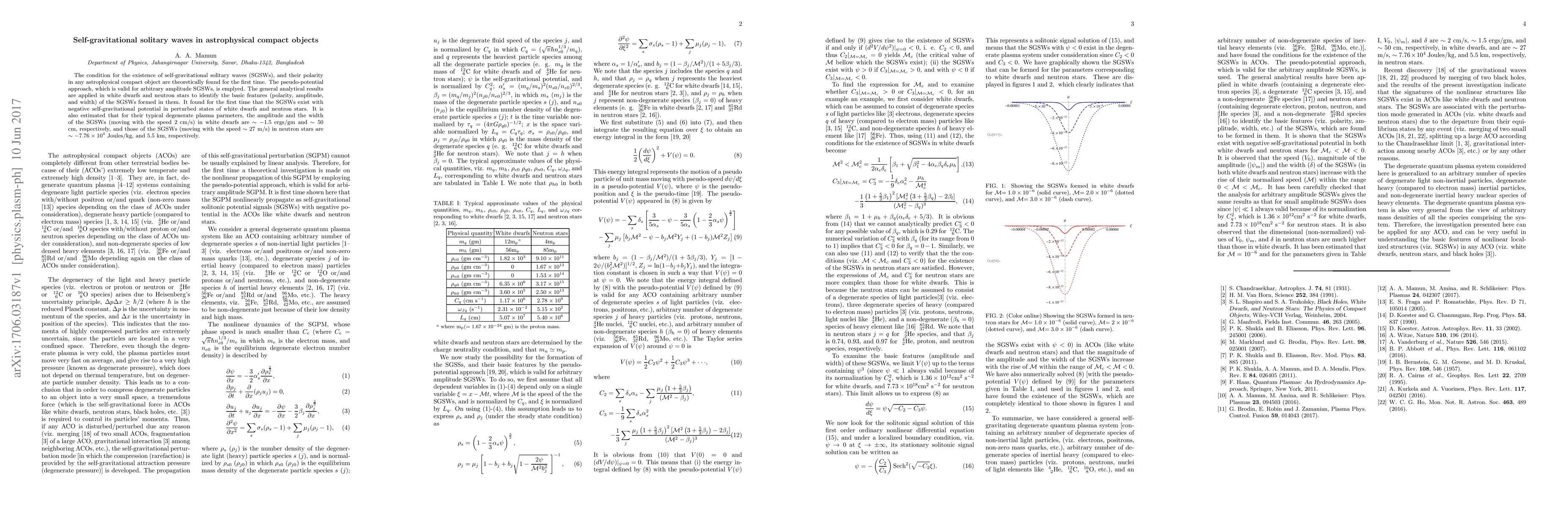 Researchers discovered self-gravitational solitary waves in white dwarfs and neutron stars, with key features including negative potential and varying amplitudes.