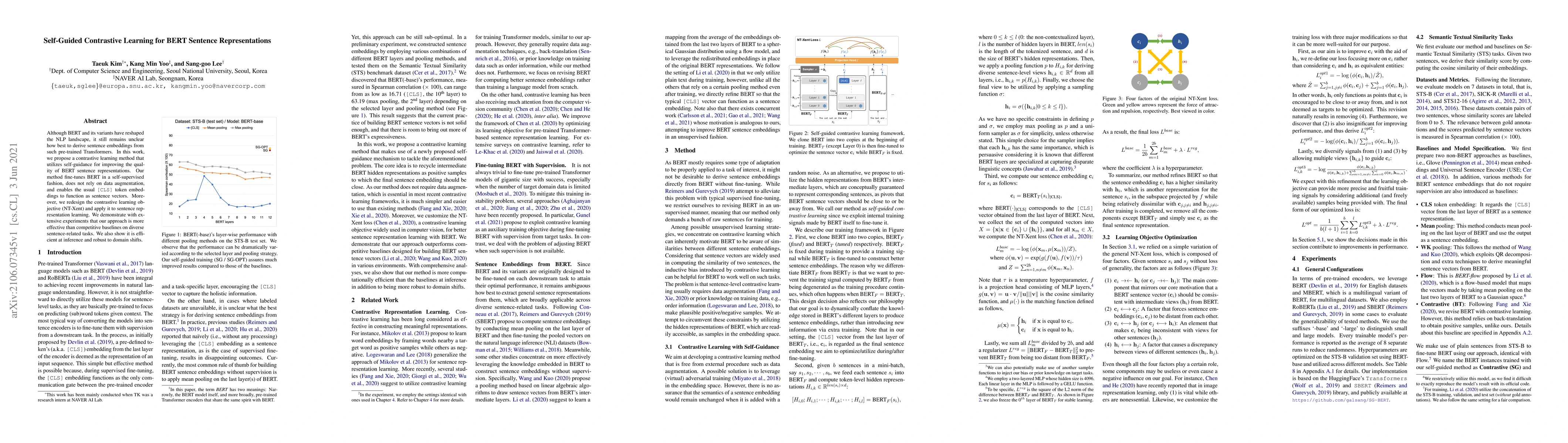 This paper proposes a self-guided contrastive learning method to enhance BERT's sentence embeddings without data augmentation. The redesigned NT-Xent objective is shown to outperform baselines on various sentence tasks, while remaining efficient and robust.