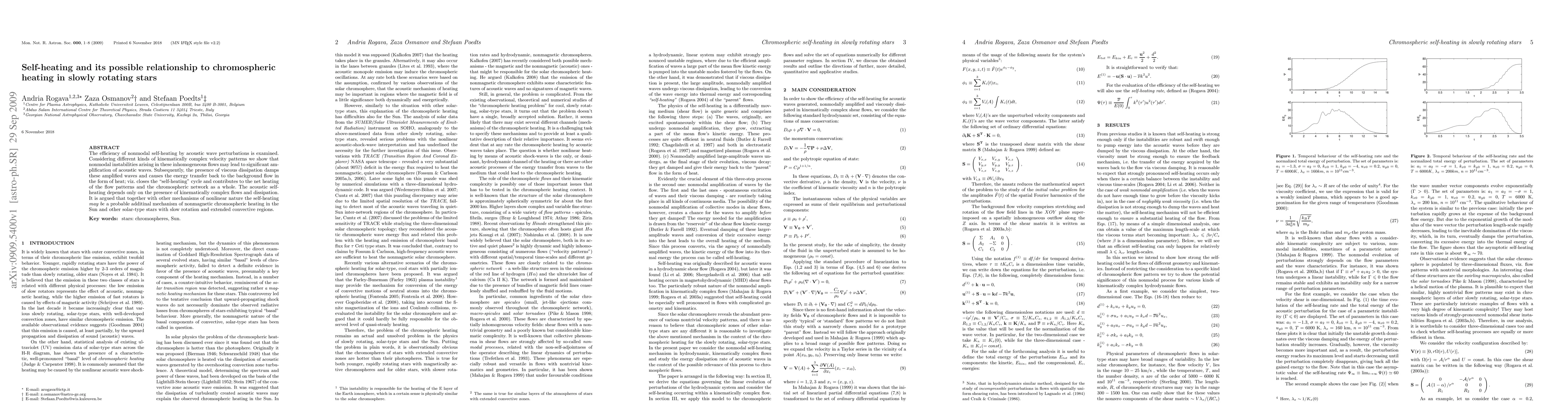 This paper explores the efficiency of nonmodal self-heating via acoustic wave perturbations in slowly rotating stars, suggesting that kinematically complex flows and viscous dissipation can amplify acoustic waves, leading to significant heating in chromospheric networks. It posits that self-heating, along with other nonlinear mechanisms, could contribute to chromospheric heating in solar-type stars.